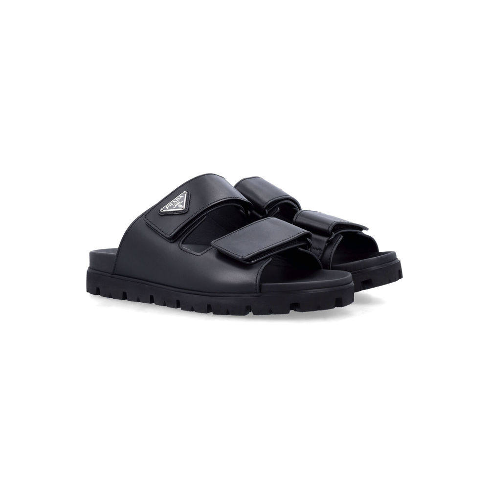 1h可退 香港直邮Prada 普拉达 男士 徽标铭牌皮革拖鞋 2X31293LEM