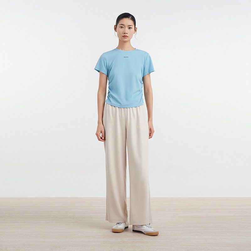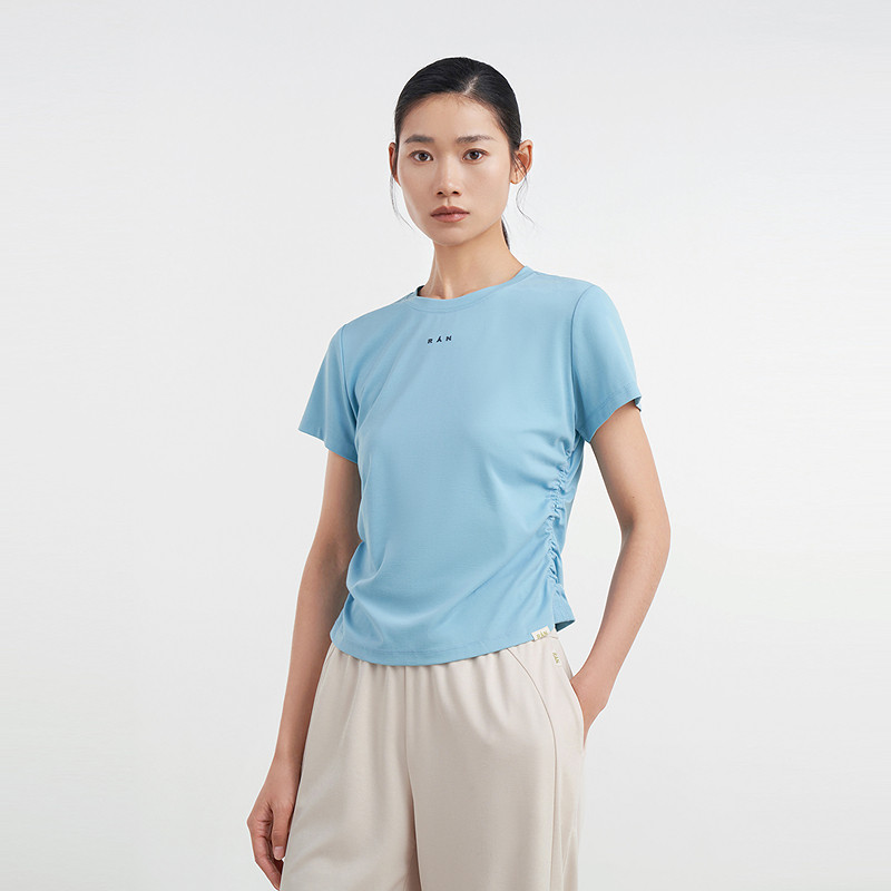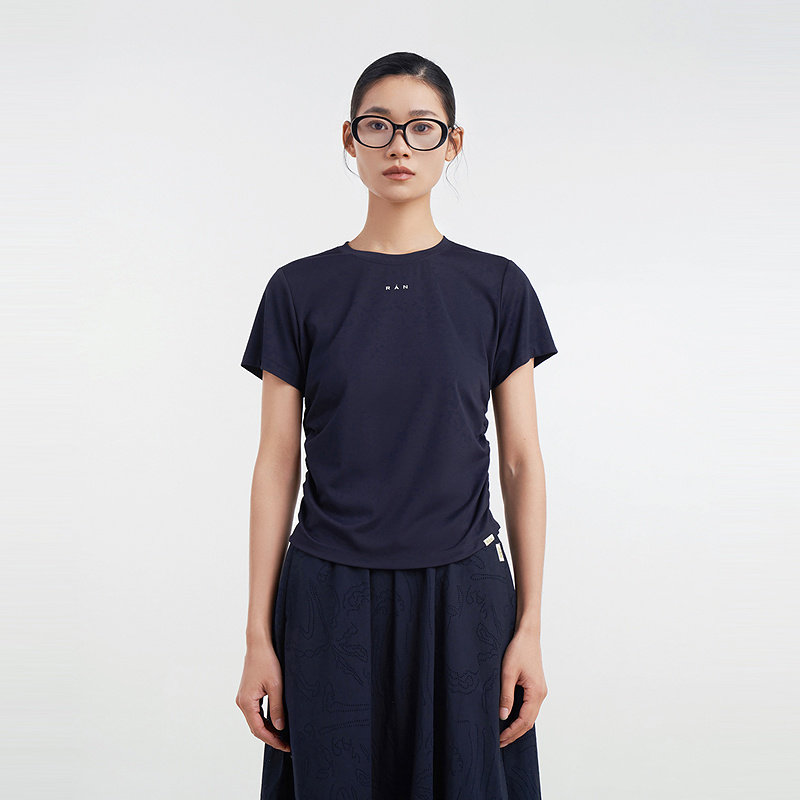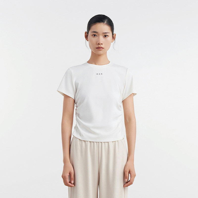 [专柜同款]Yifini/易菲缩褶立体感修身短款字母印花T恤女D04Z1204