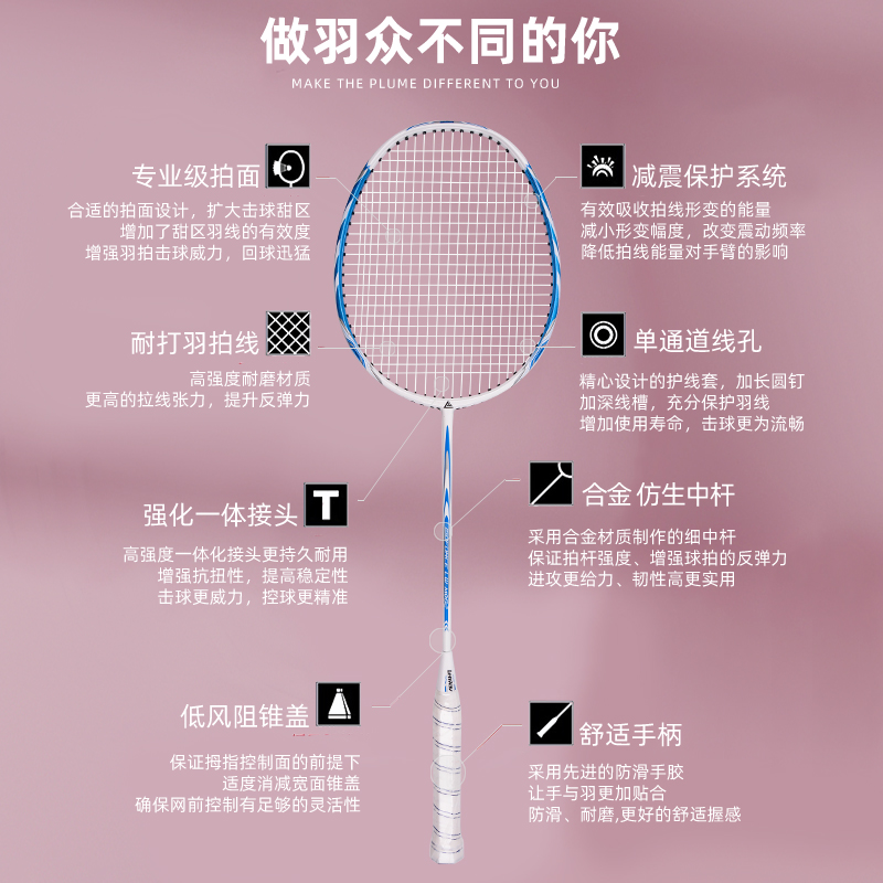 兰威羽毛球拍套装双拍耐用型全碳素超轻单成人耐打正品专业家庭