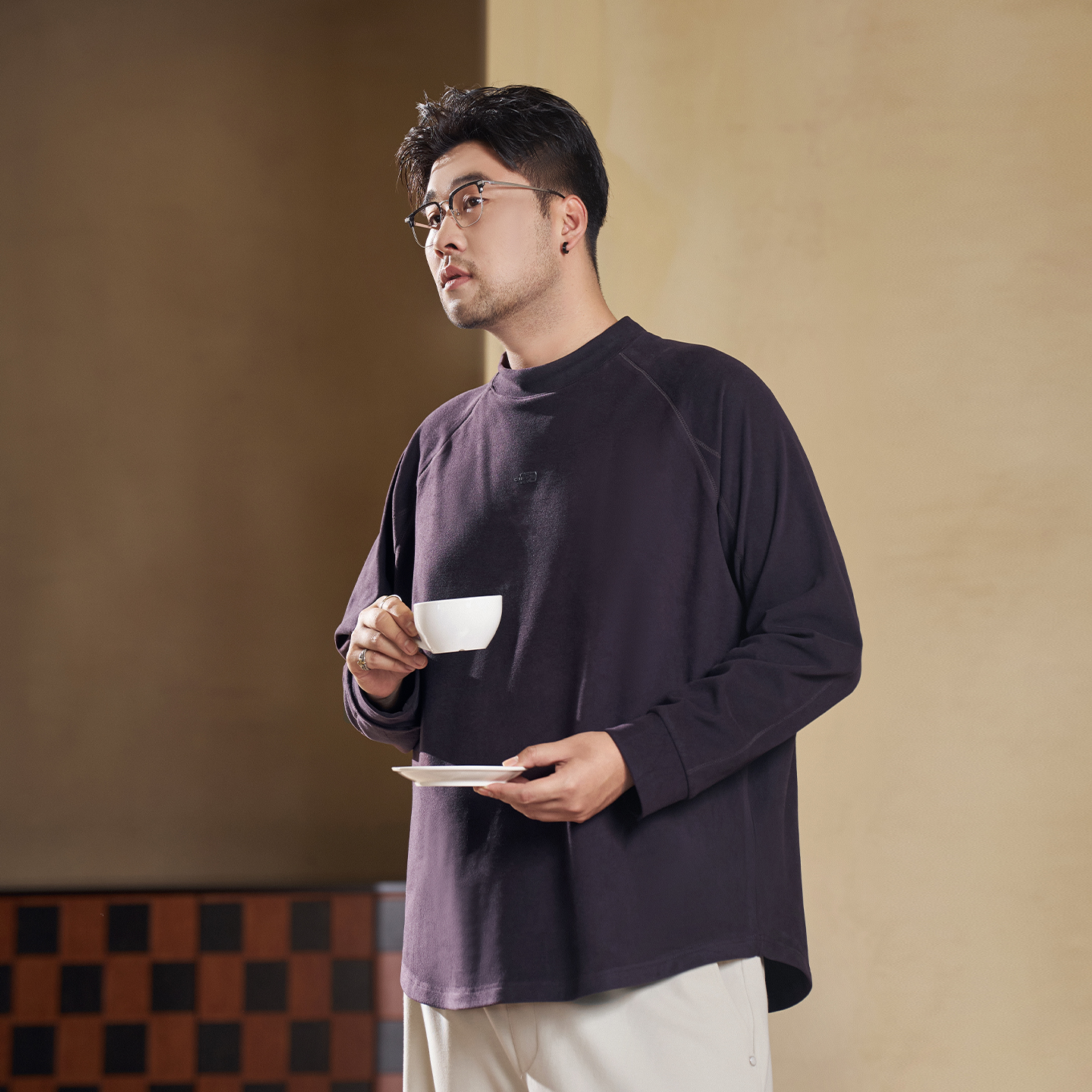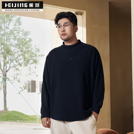 黑劲大码男装半高领卫衣秋冬季蓄热德绒百搭长袖胖子男显瘦打底衫