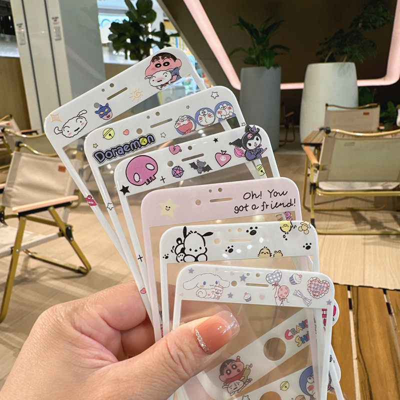 苹果5S屏幕保护膜适用iPhone6Plus防尘8可爱卡通7高清透明SE3钢化