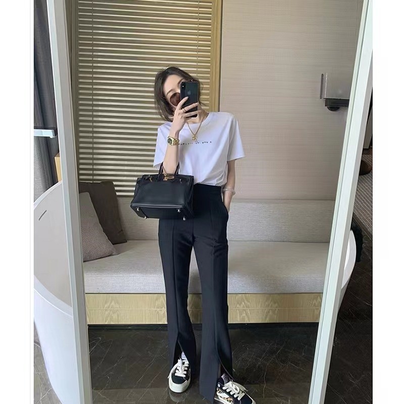 夏季2025新款简约字母印花纯棉t恤白色上衣女盐系ins宽松正肩短袖