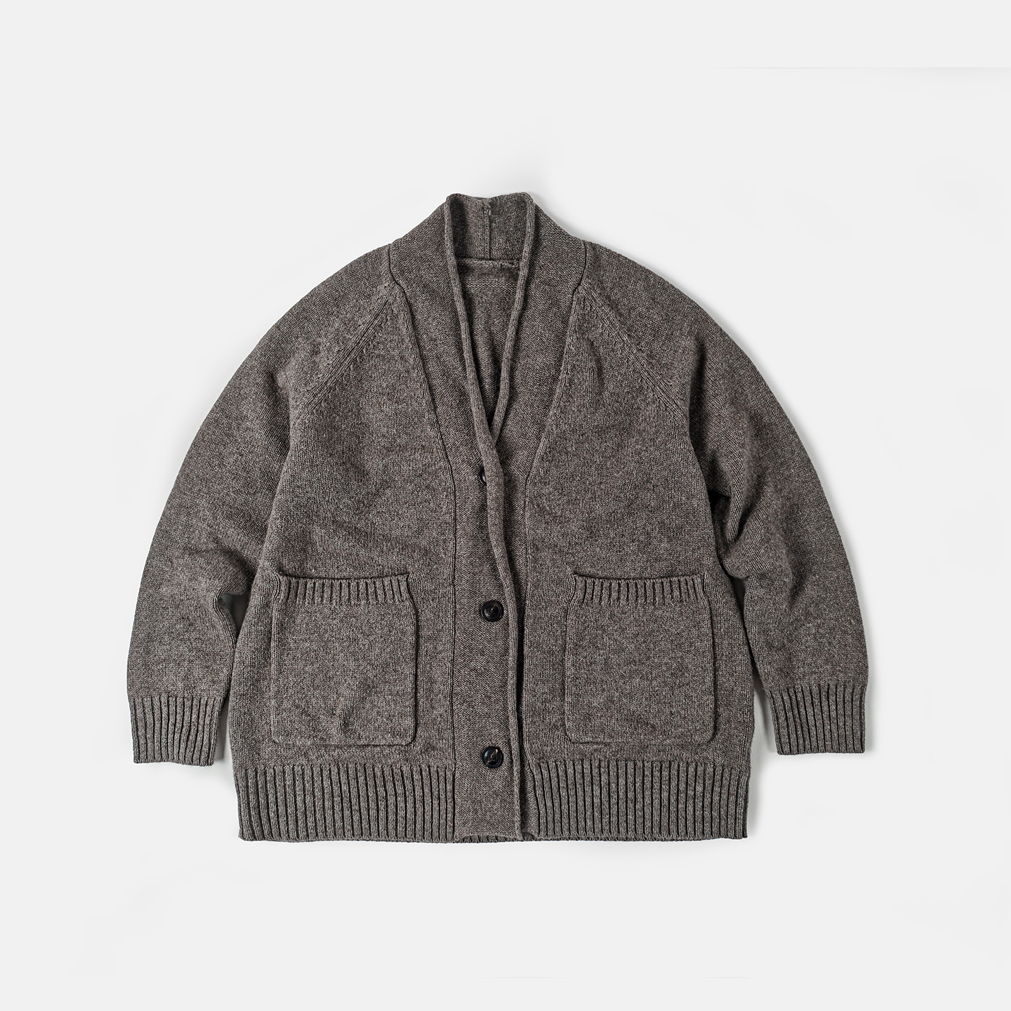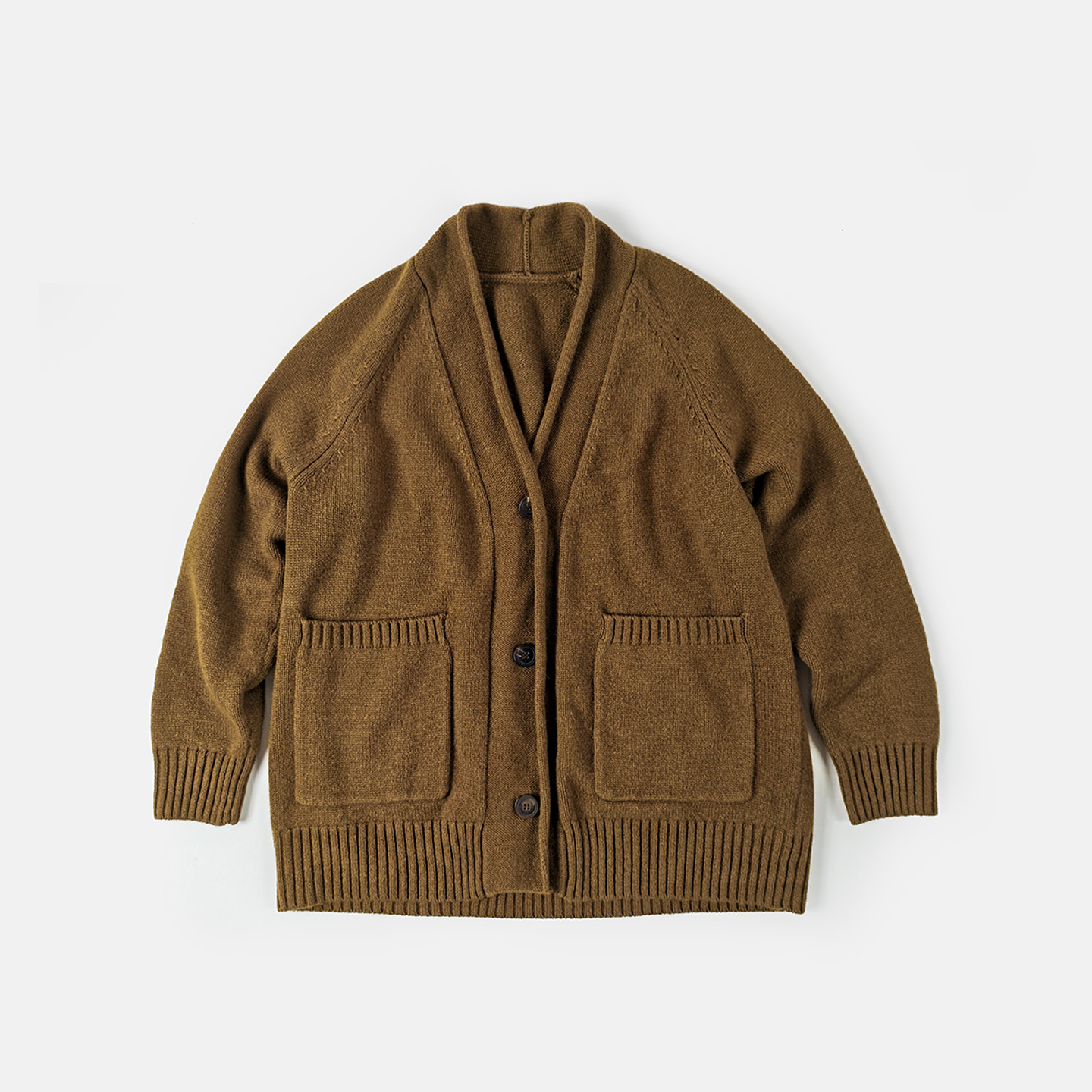 宝藏蓝秋冬新款羊毛牛绒v领开衫慵懒随性中长款针织衫上衣外套女