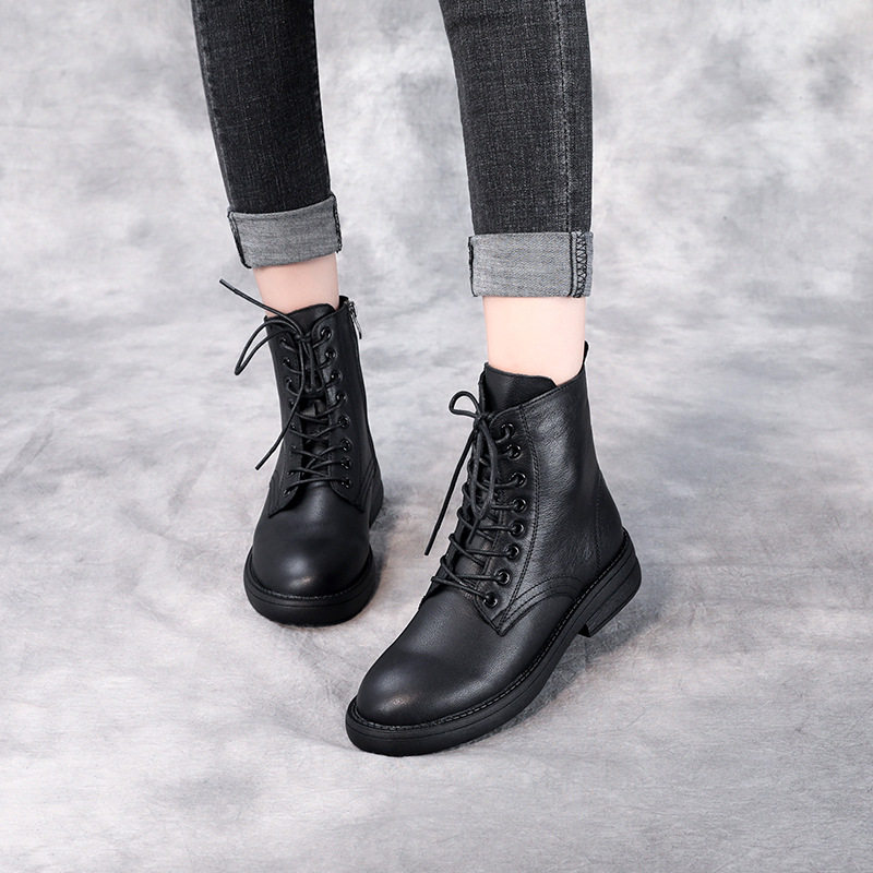 断码清仓蜻蜓牌马丁靴女英伦风春秋单靴2024新款侧拉链平底女靴子