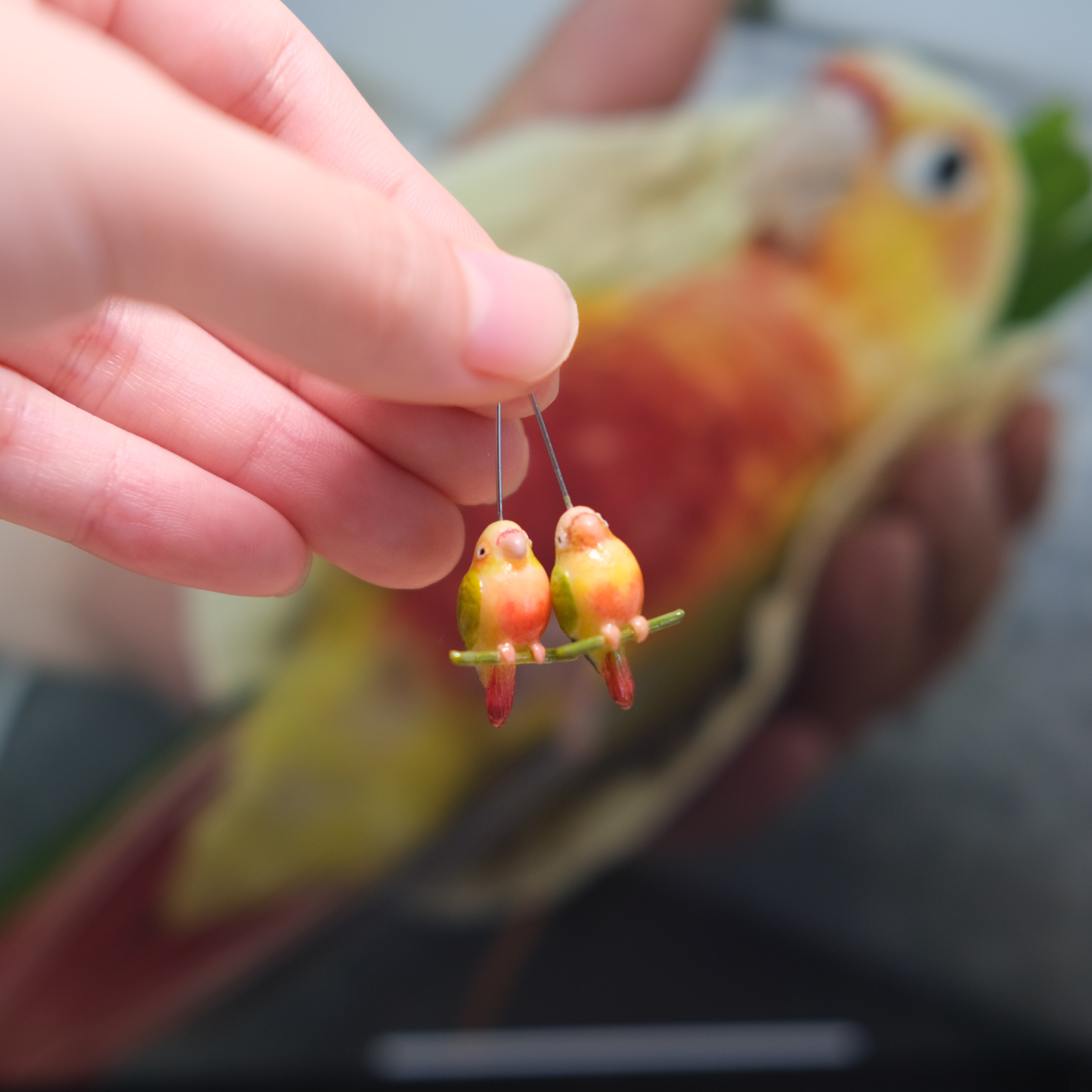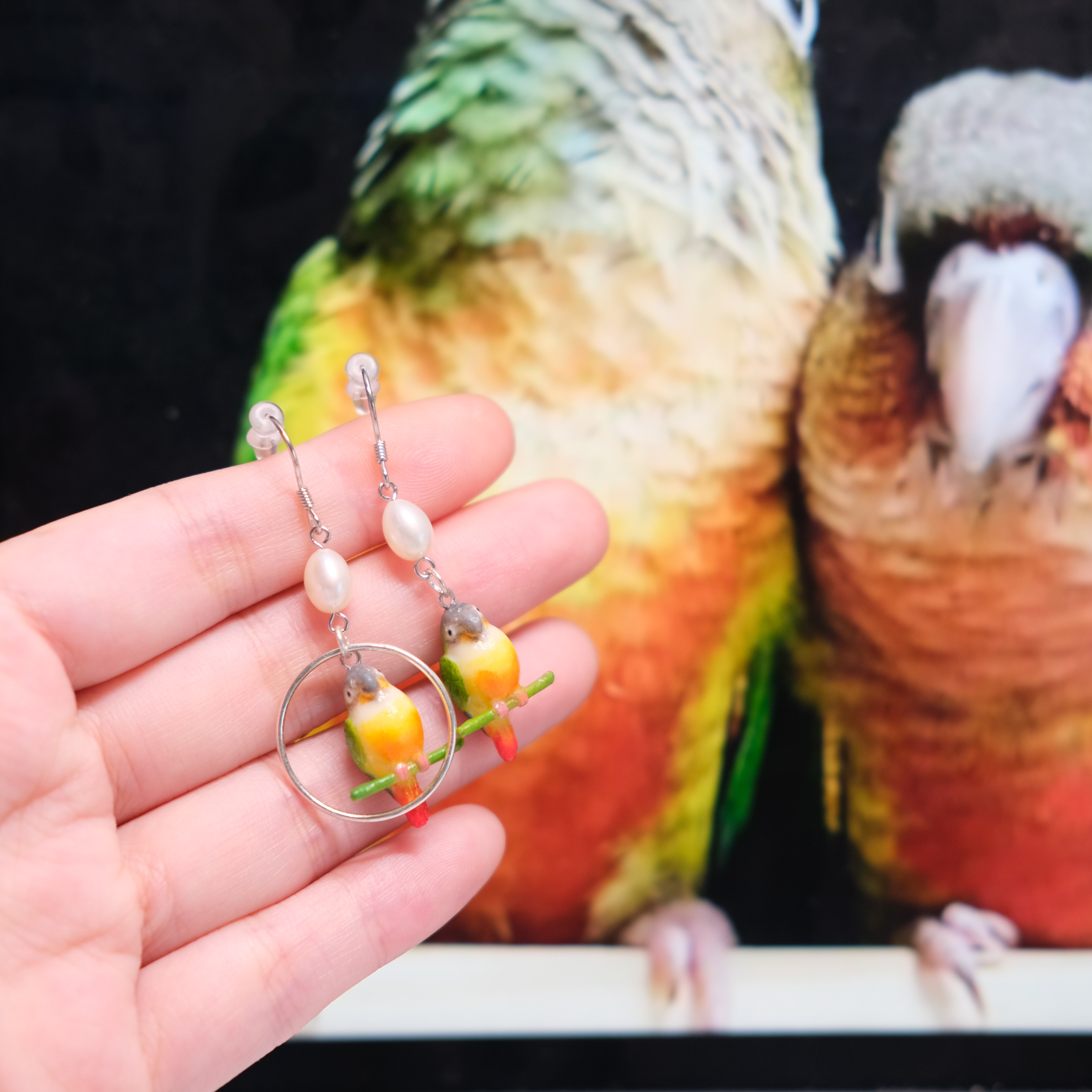 Quinta手作 黄边小太阳凤梨小太阳925银耳环不对称牡丹鹦鹉耳夹