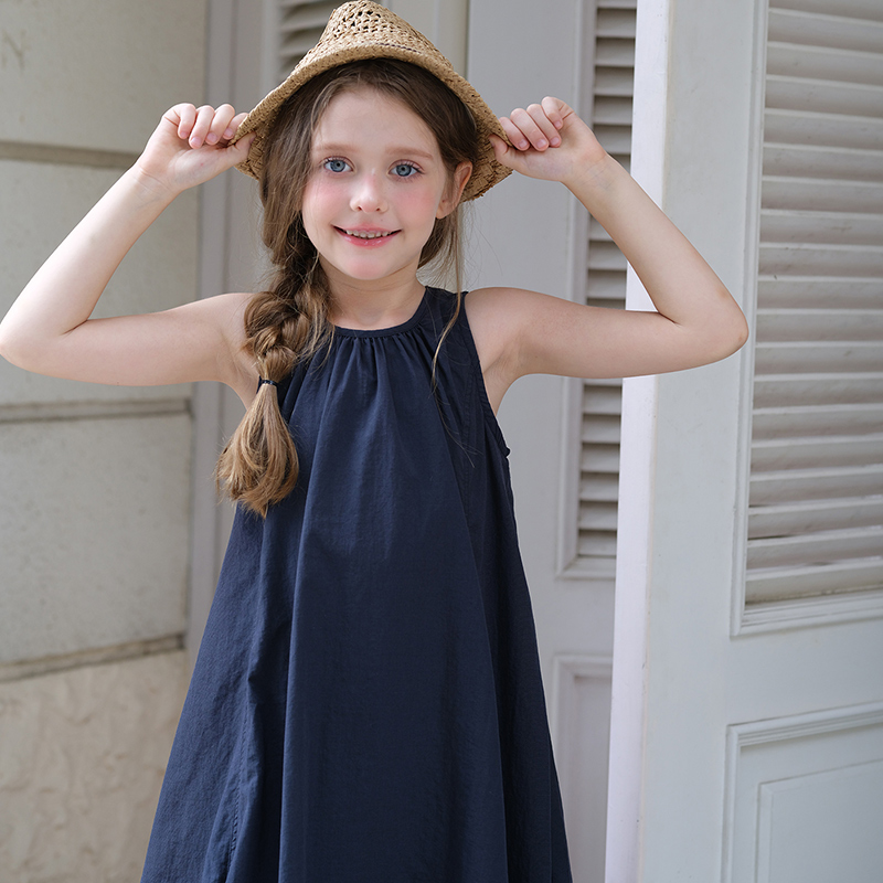 PISELLI史豌豆女童花苞连衣裙2025夏季新款中大童休闲百搭背心裙