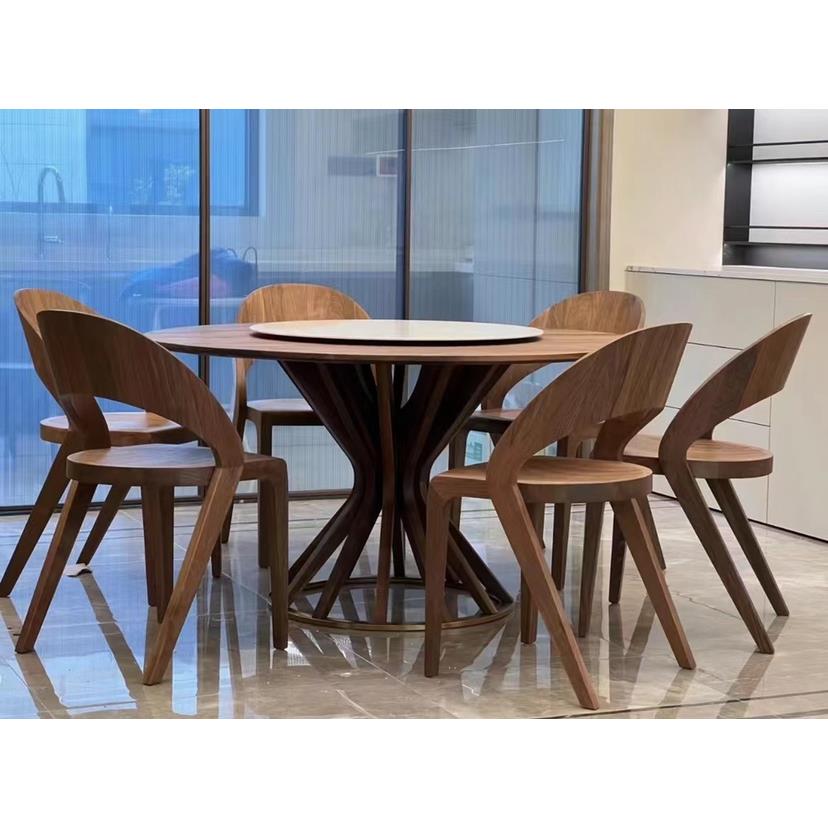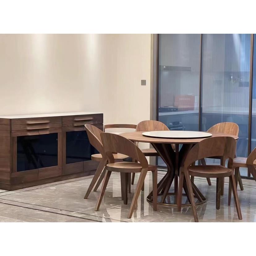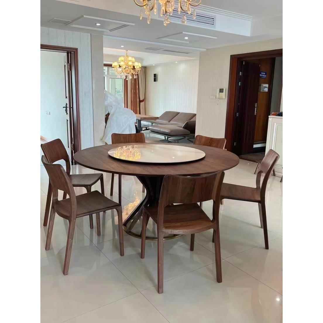 北美黑胡桃百强家具实木圆形餐桌纯实木现代家用别墅大圆餐桌转盘