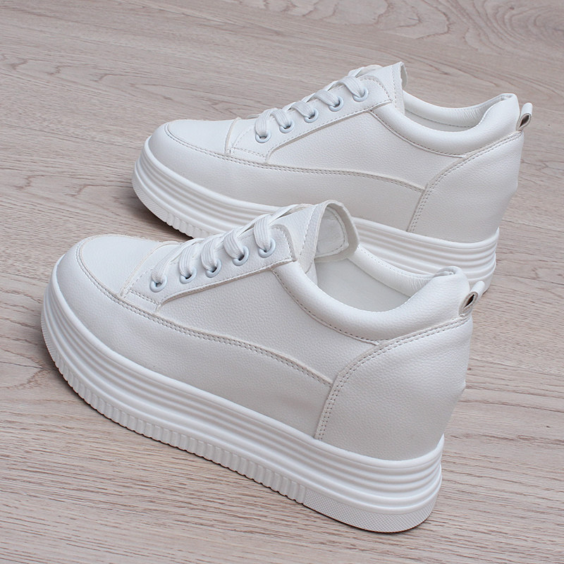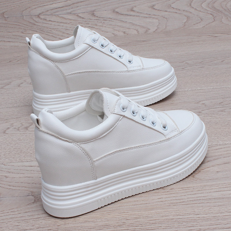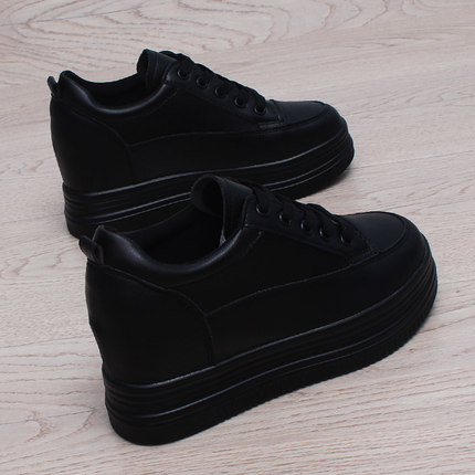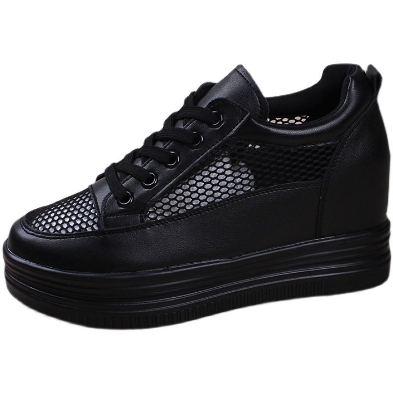 松糕厚底女单鞋2025春秋新款透气休闲女鞋内增高7cm全黑工作鞋女