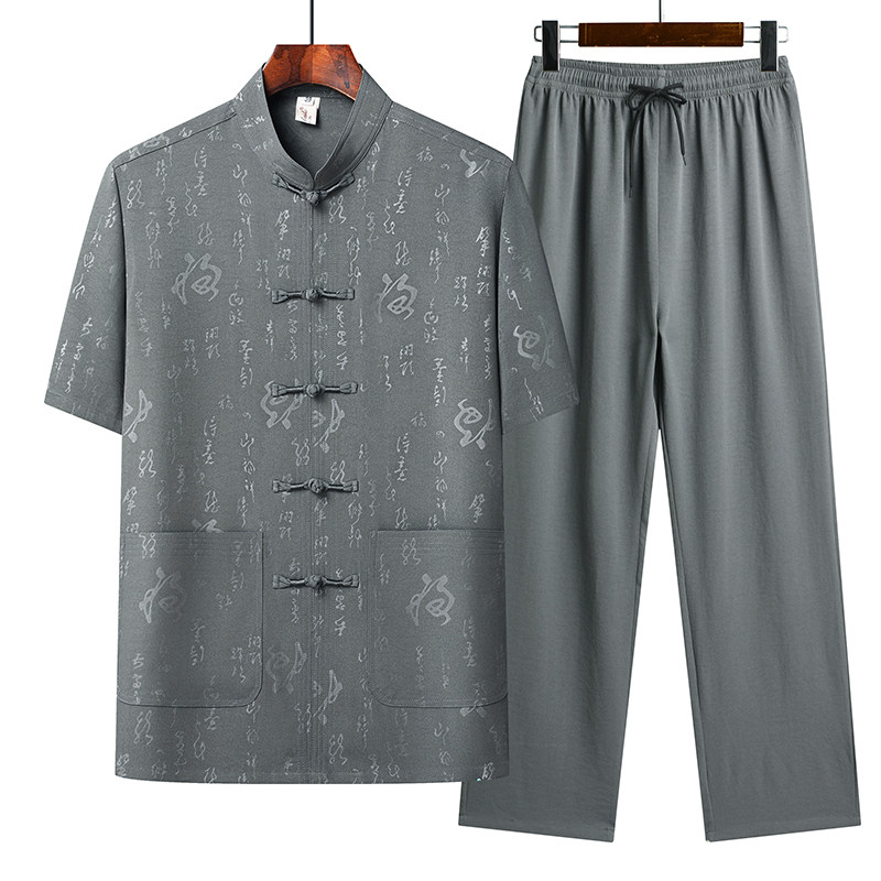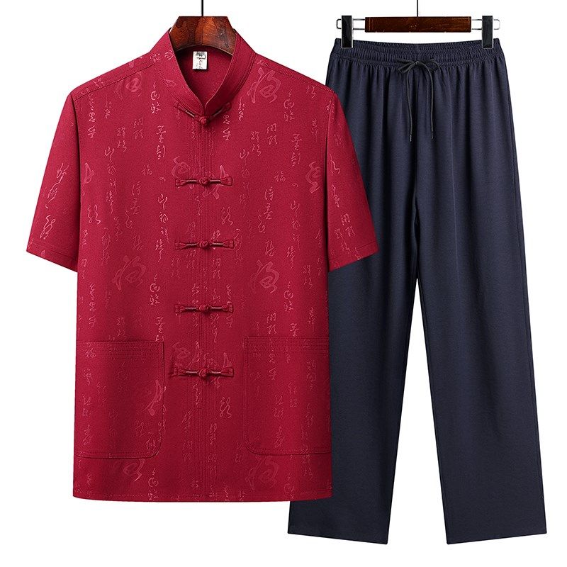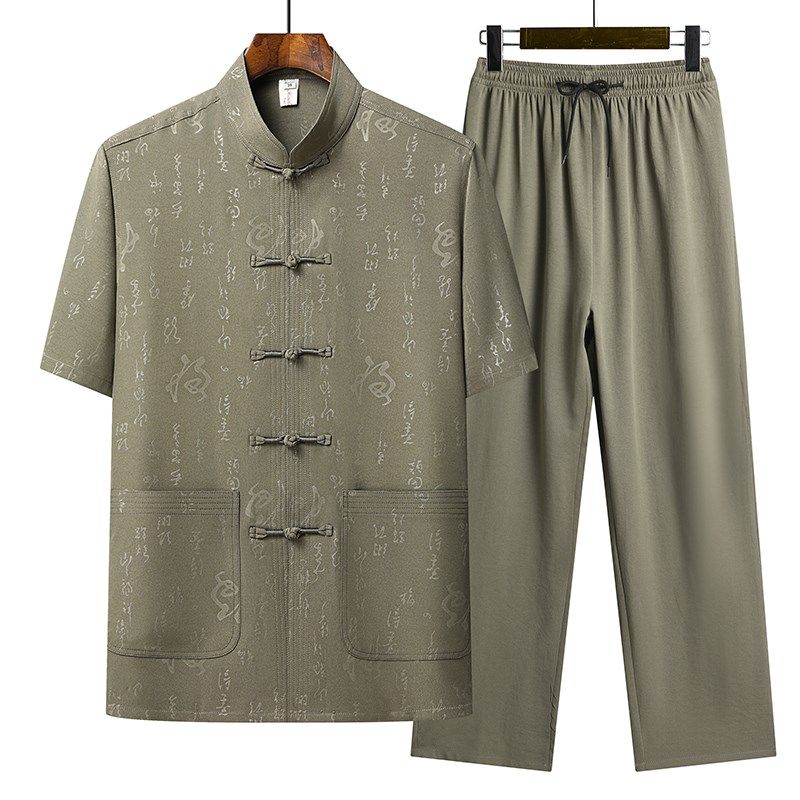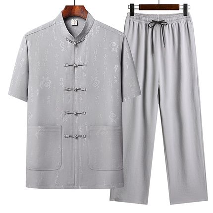 爸爸短袖唐装套装男夏季薄款中老年70岁爷爷中国风男装60父亲上衣