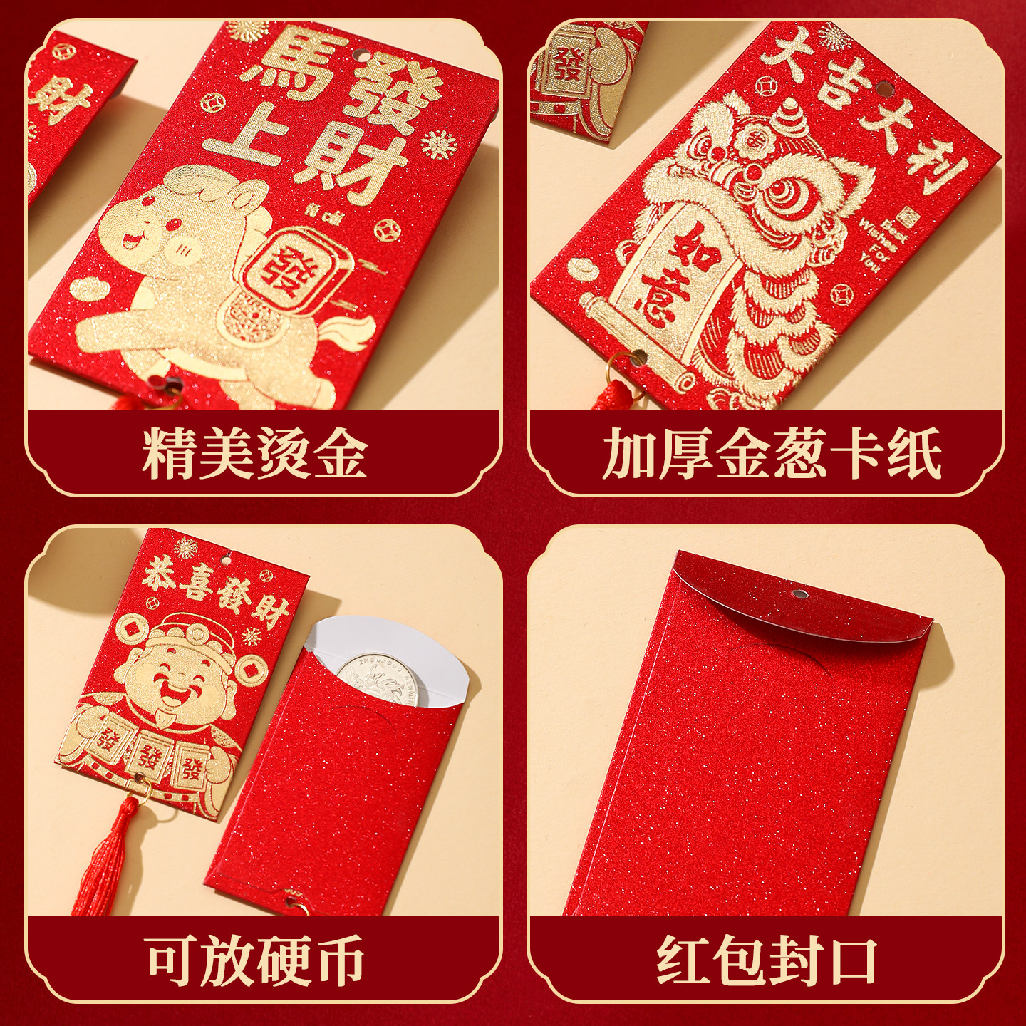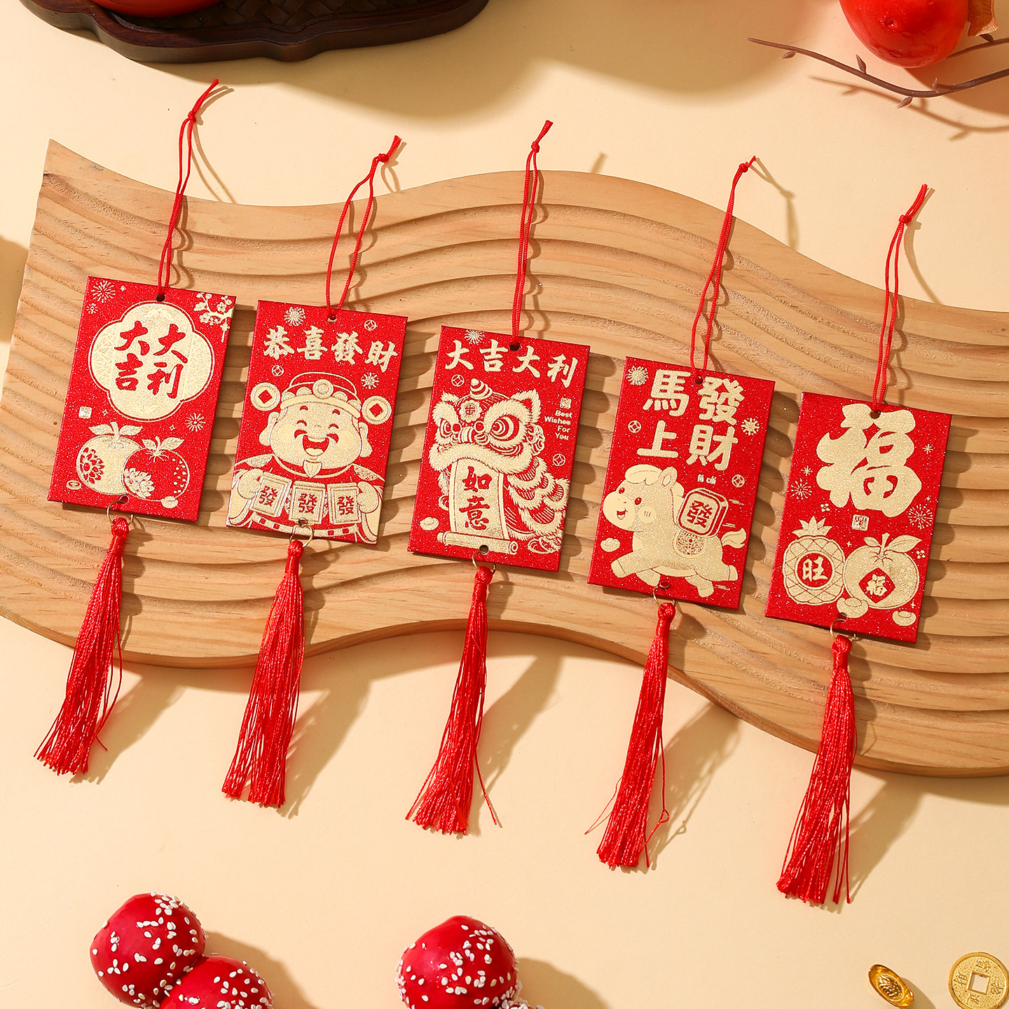2026马年装饰烫金小红包利是挂件春节客厅公司绿植盆栽氛围布置品