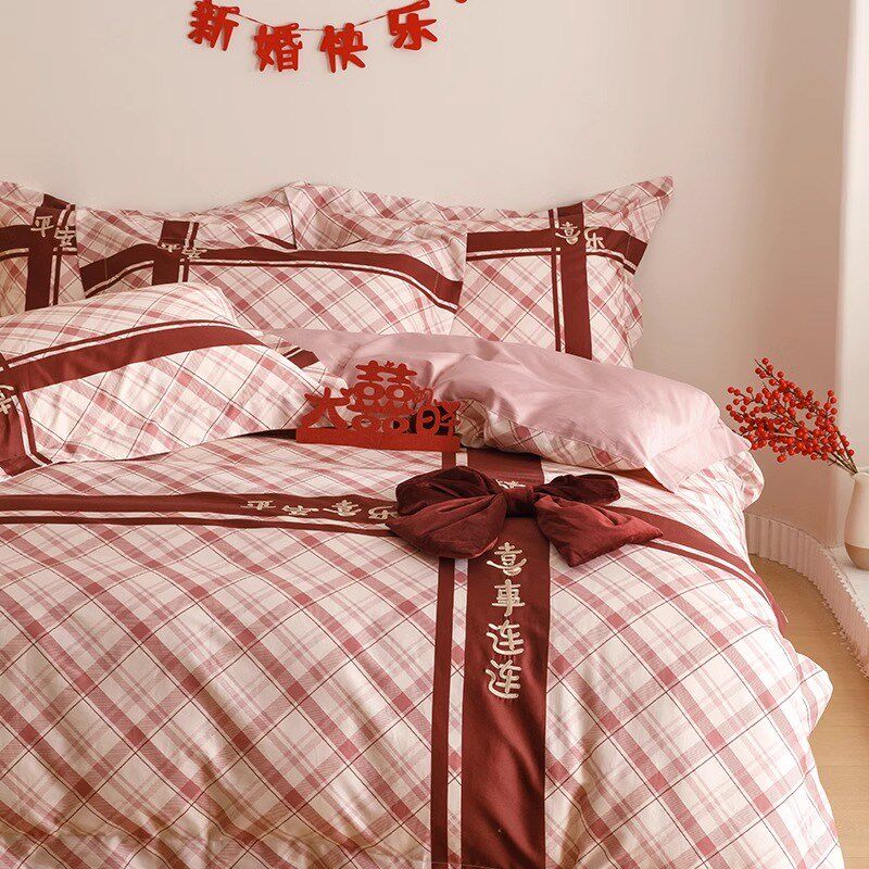 100支长绒棉结婚四件套全棉纯棉婚庆床单喜被男女方X陪嫁床上用品
