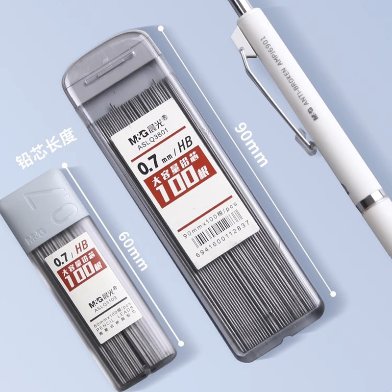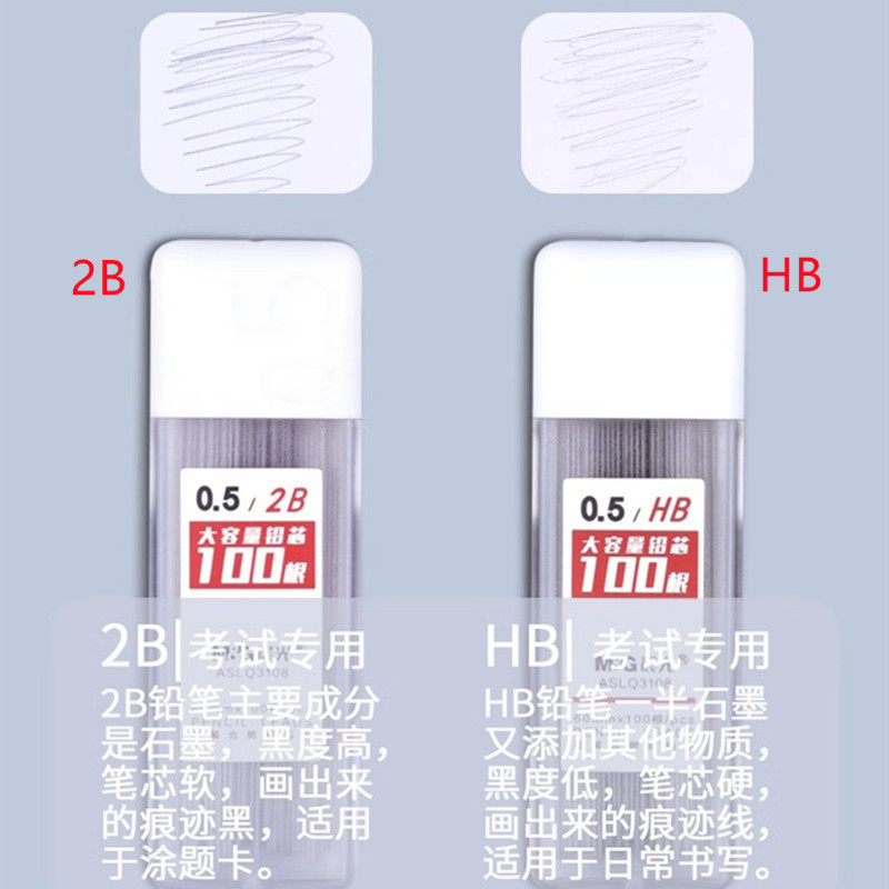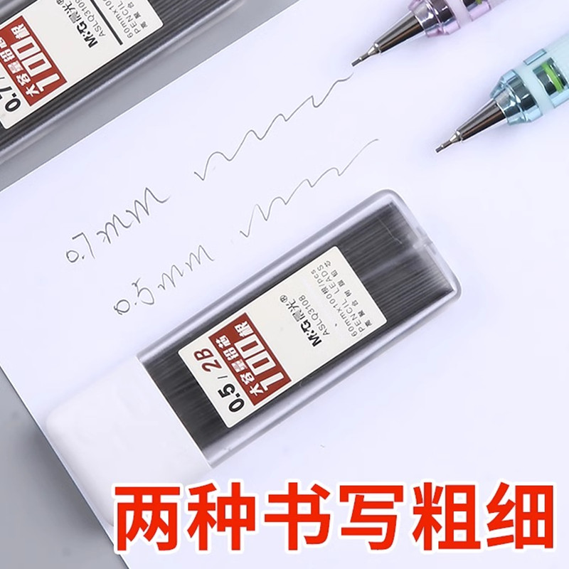 晨光大容量自动铅笔芯HB2B学生0.5mm0.7mm不易断铅芯按动铅笔替芯