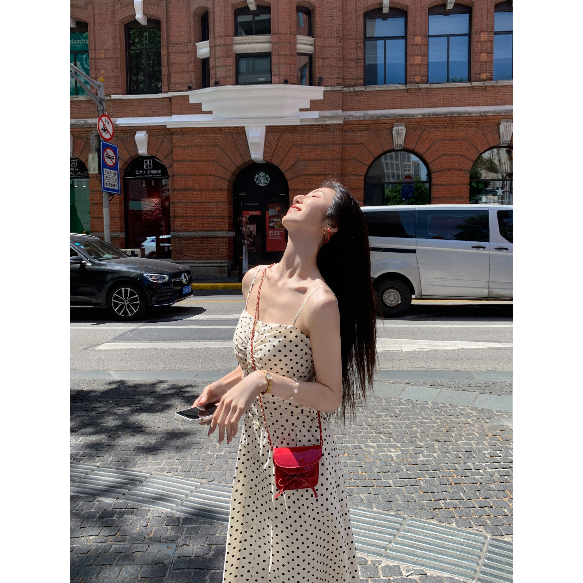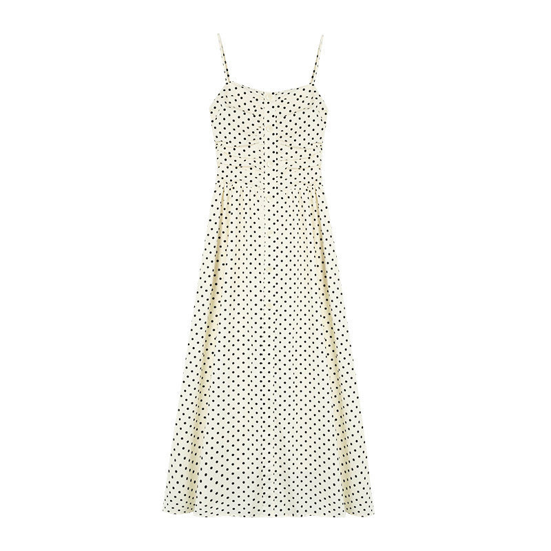 MULVAN 白色波点抹胸吊带裙女夏度假连衣裙法式收腰褶皱长裙