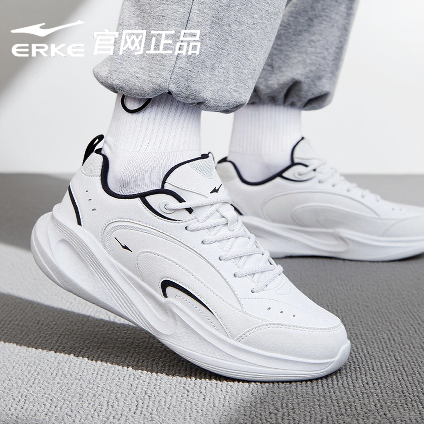 鸿星尔克男鞋跑步鞋子2025新款男士皮面耐磨轻便老爹鞋休闲运动鞋
