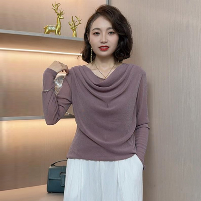气质荡领网纱打底衫女2025秋季新款内搭洋气显瘦长袖t恤蕾丝上衣