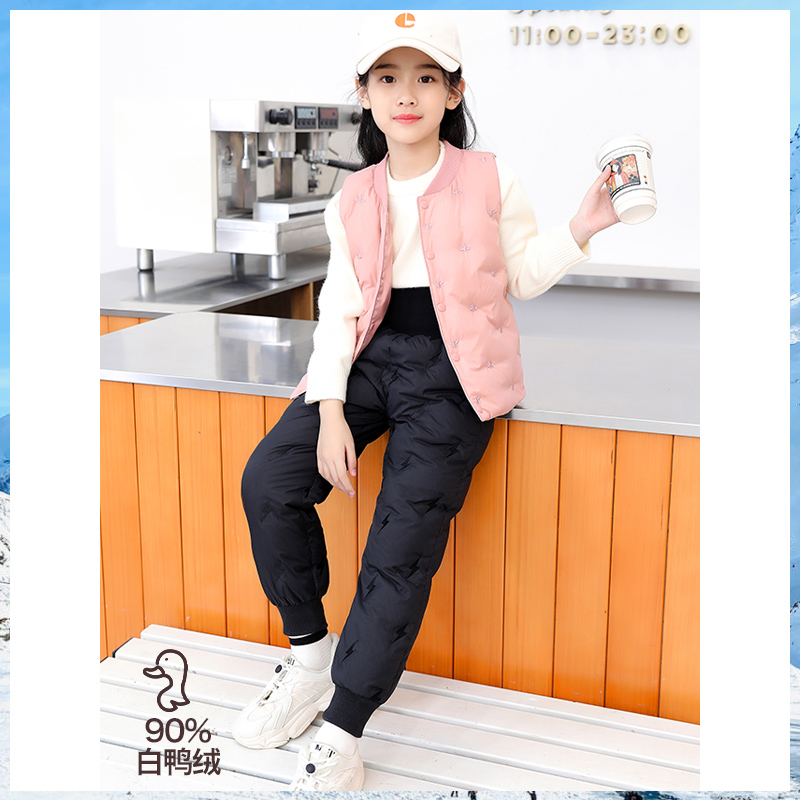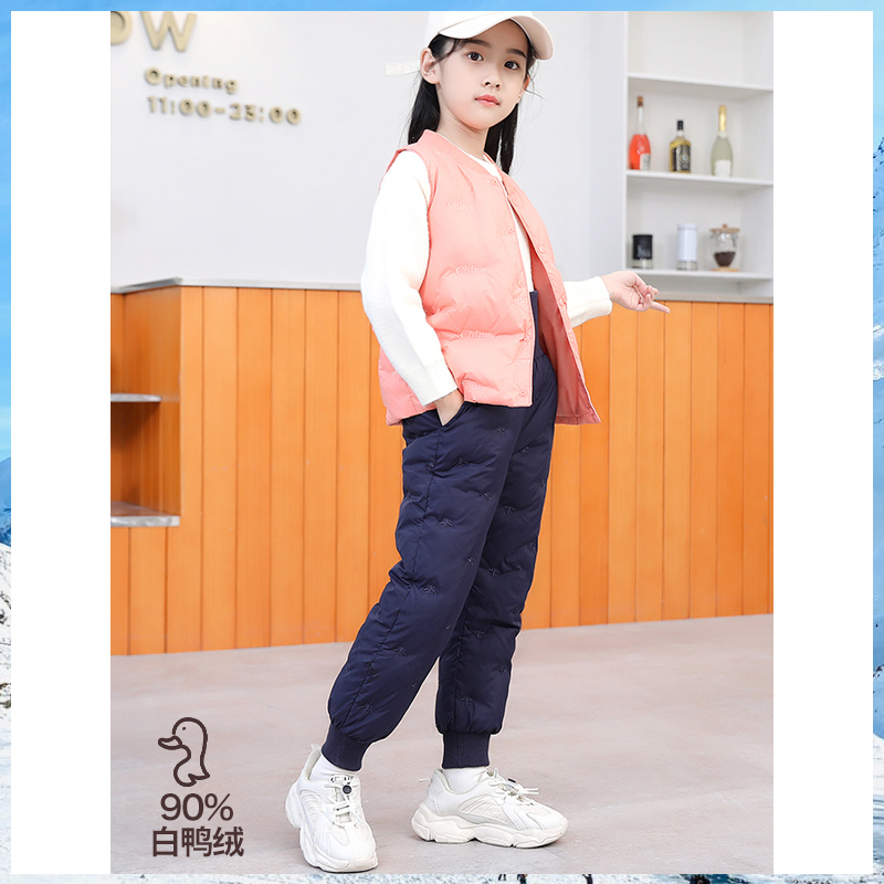 童装儿童轻薄羽绒马甲羽绒裤套装男女童宝宝保暖背心学生校服内胆