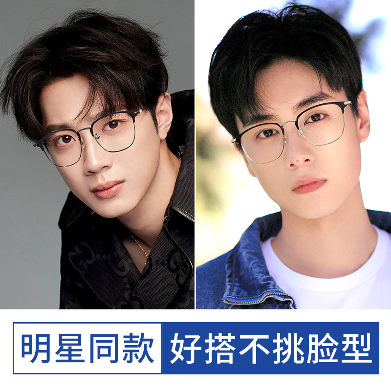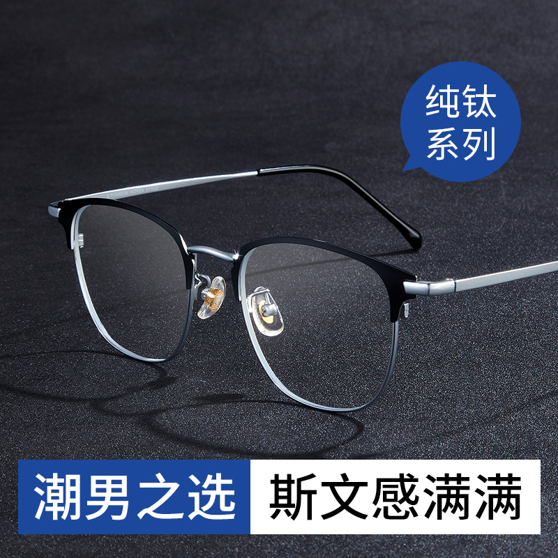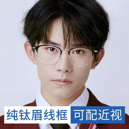 近视眼镜男款光学配镜可配度数镜片纯钛眉线眼睛框镜架男大脸显瘦