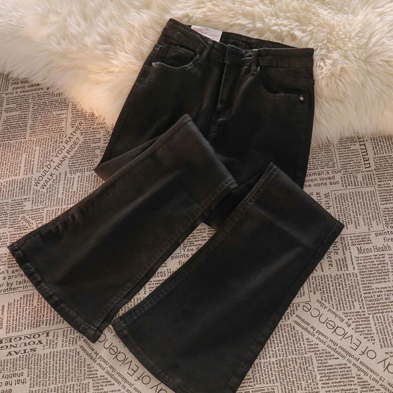 弹力微喇牛仔裤女时尚秋冬款小个子浅色修身马蹄拖地高腰喇叭长裤