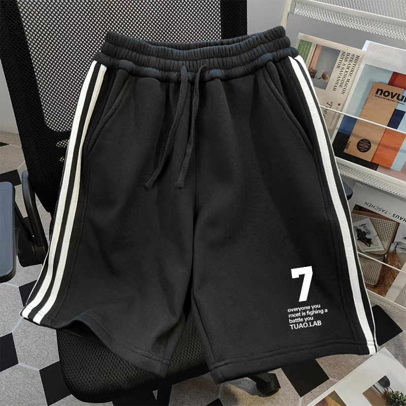 颖膝美式三条杠短裤男款夏季宽松
