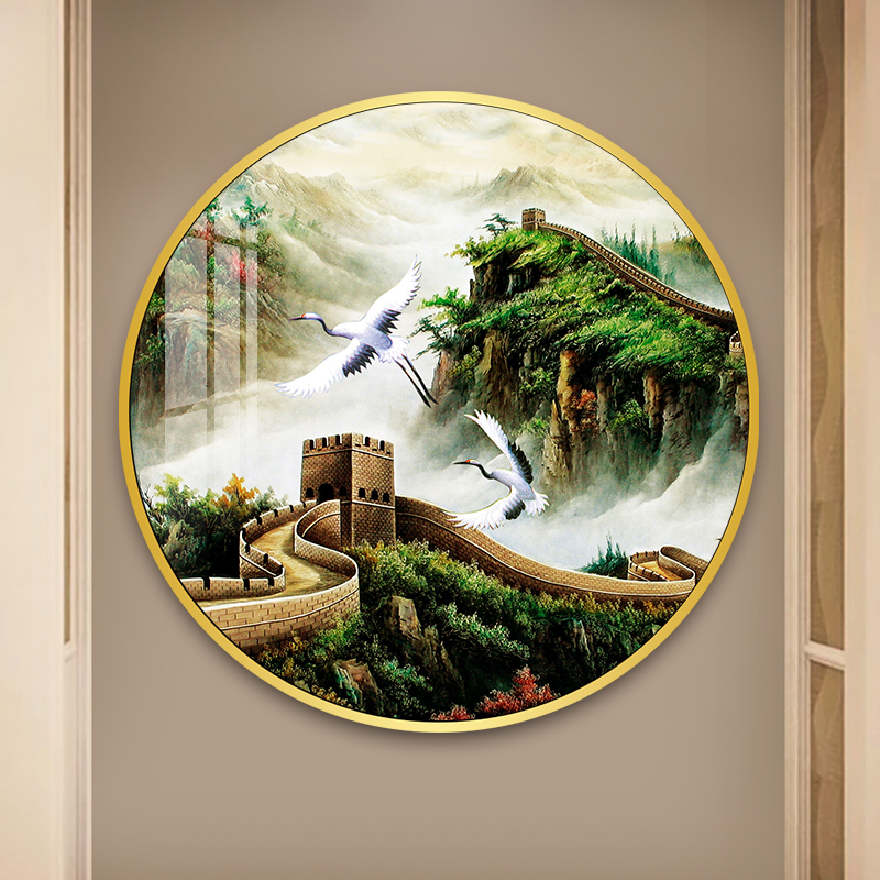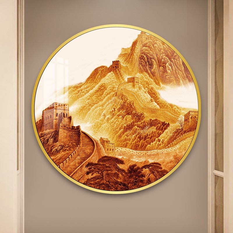 圆形万里长城客厅玄关靠山装饰画