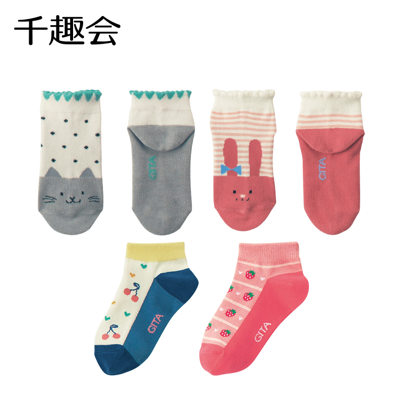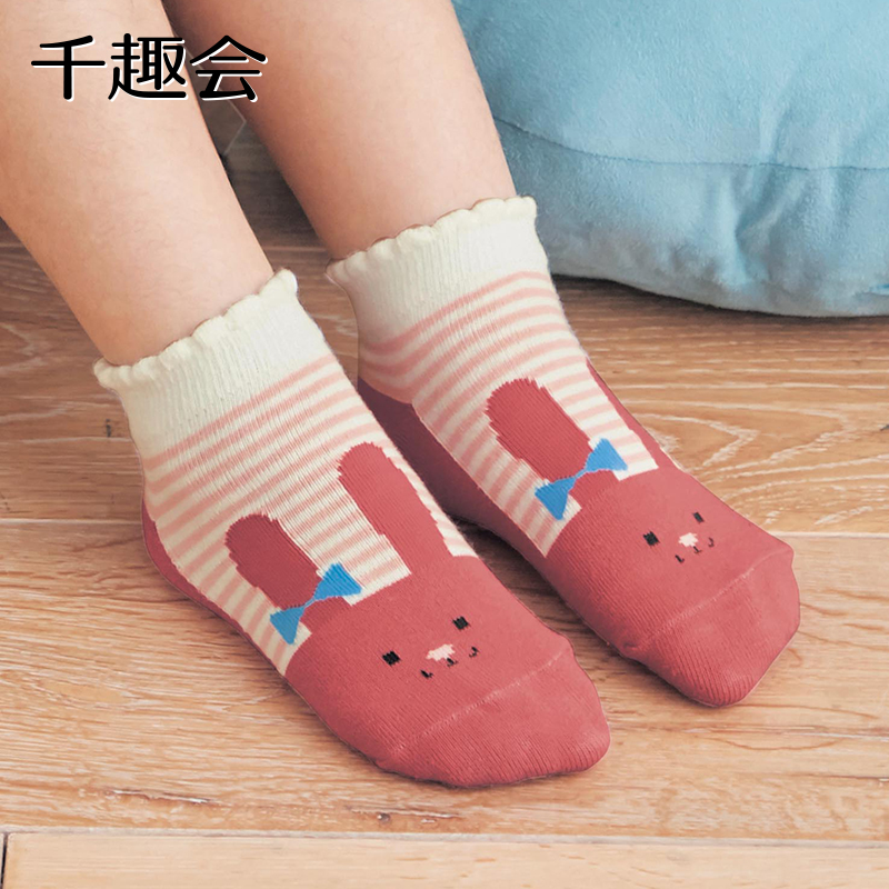 千趣会夏季儿童装短袜可爱兔子猫咪图案女童宝宝船袜袜子