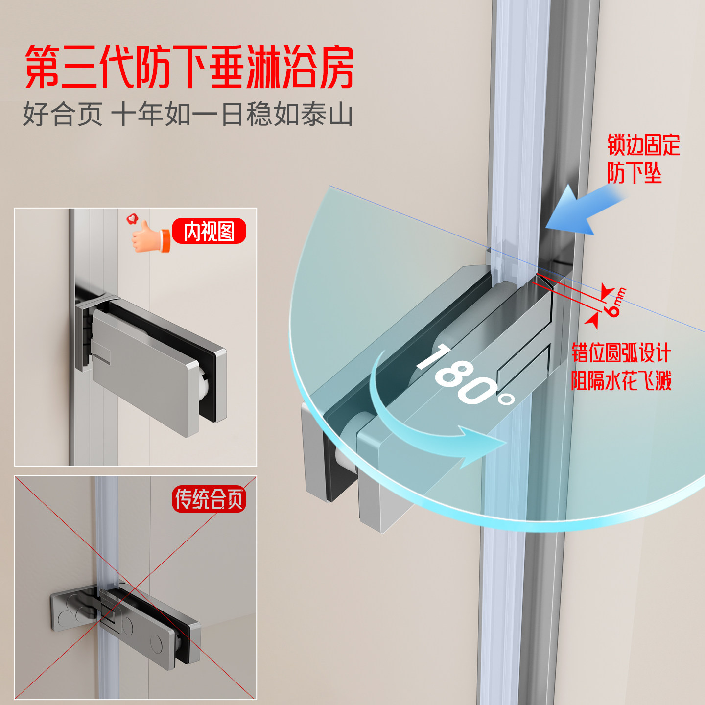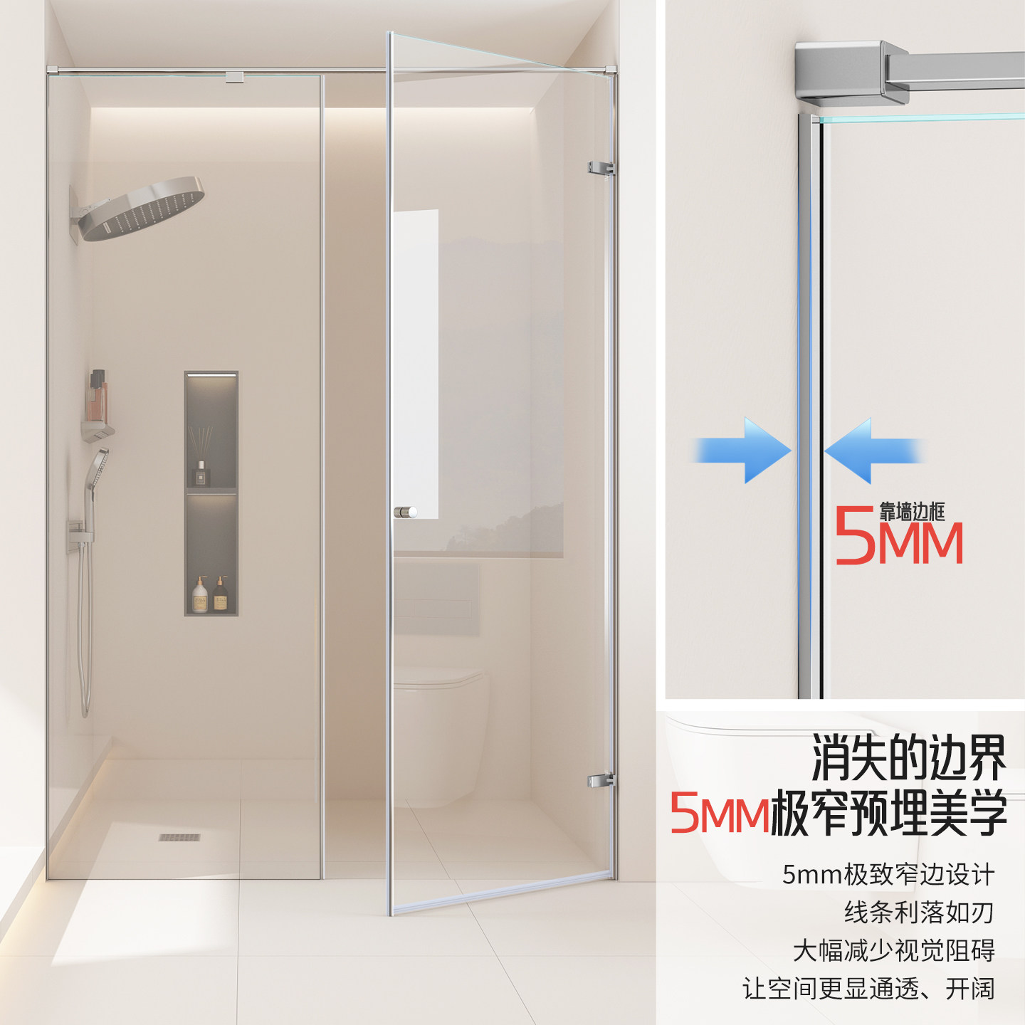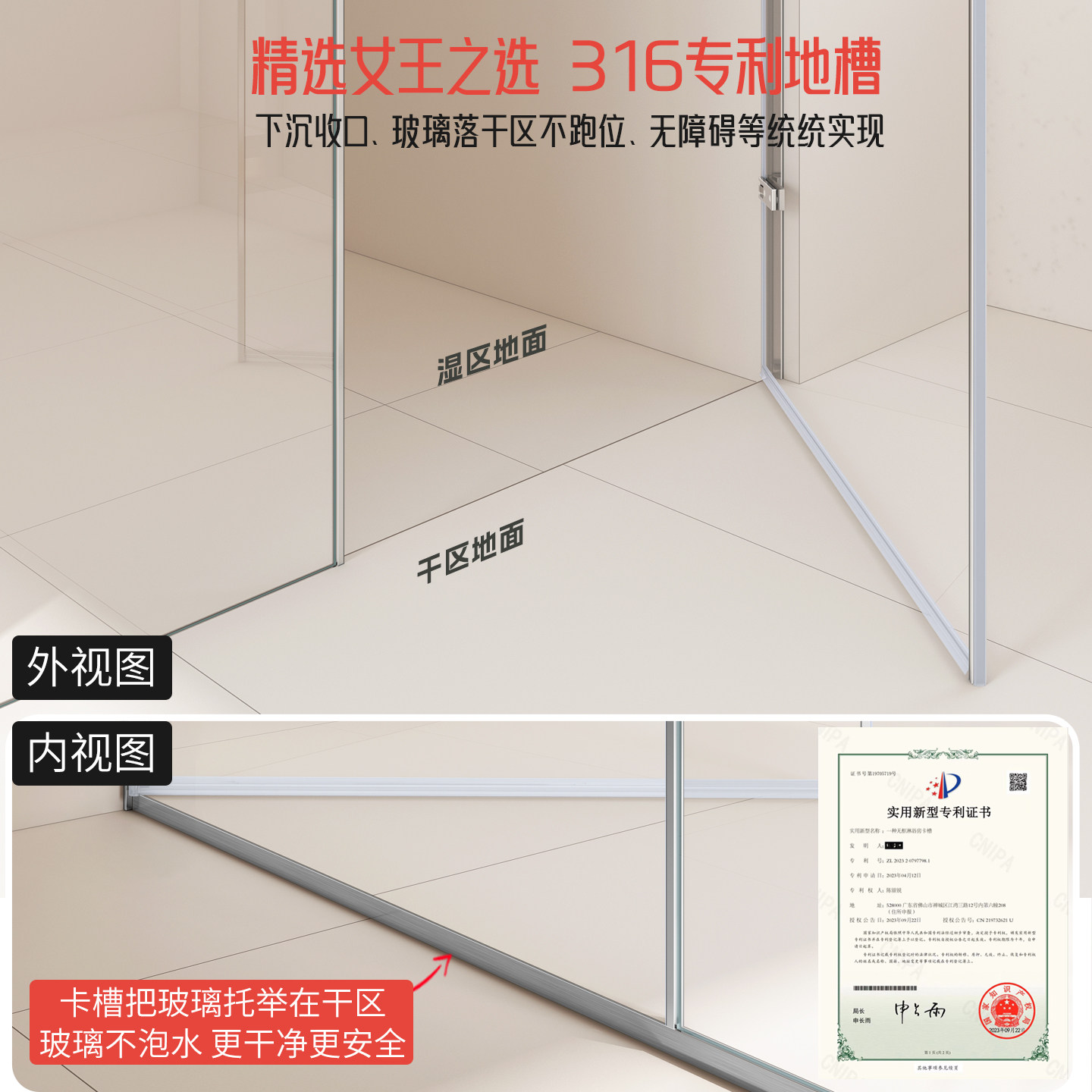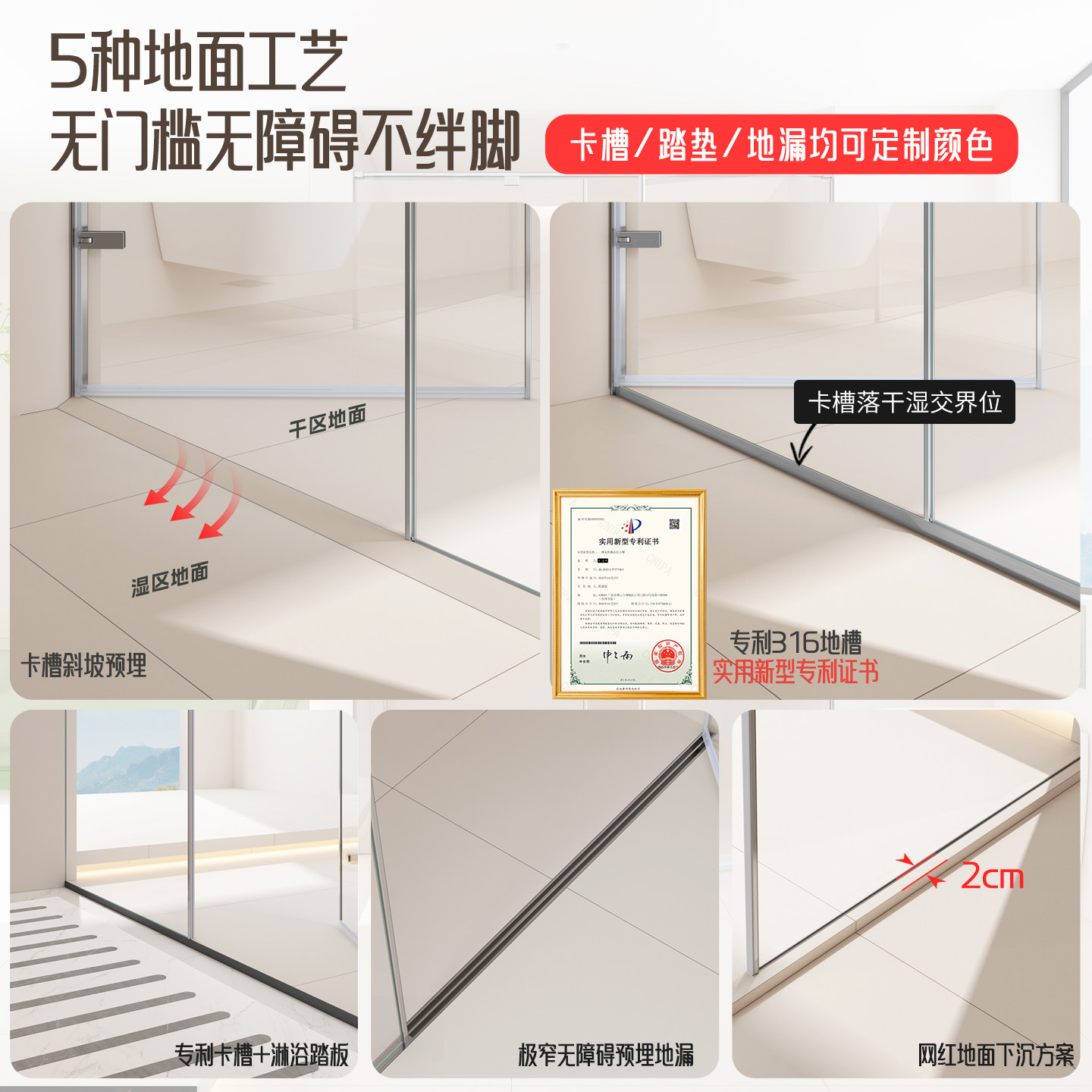 心晴极简干湿分离浴室卫生间一字玻璃隔断下沉无边框无障碍淋浴房