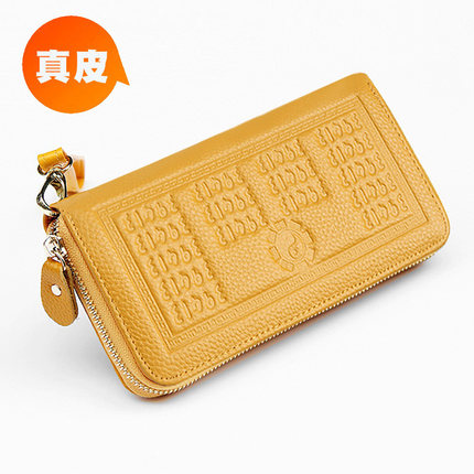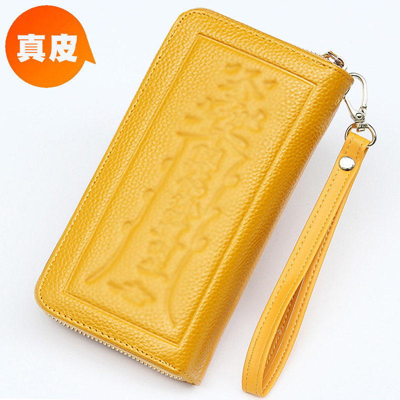 真皮包招财钱包女黄色长款牛皮手机卡包一体两用高级感男款高颜值
