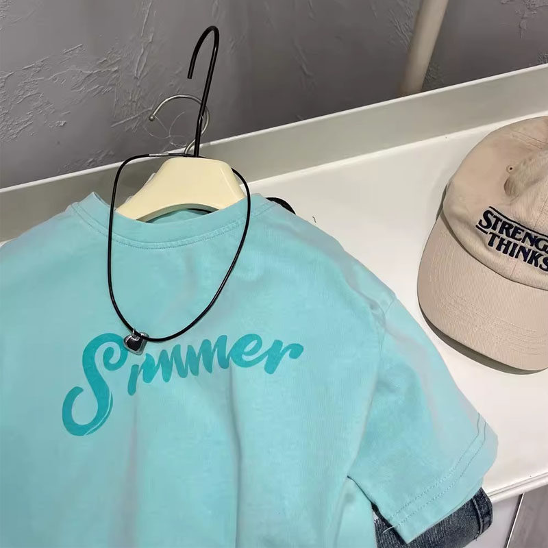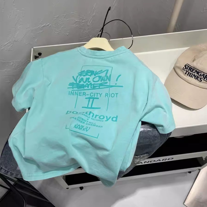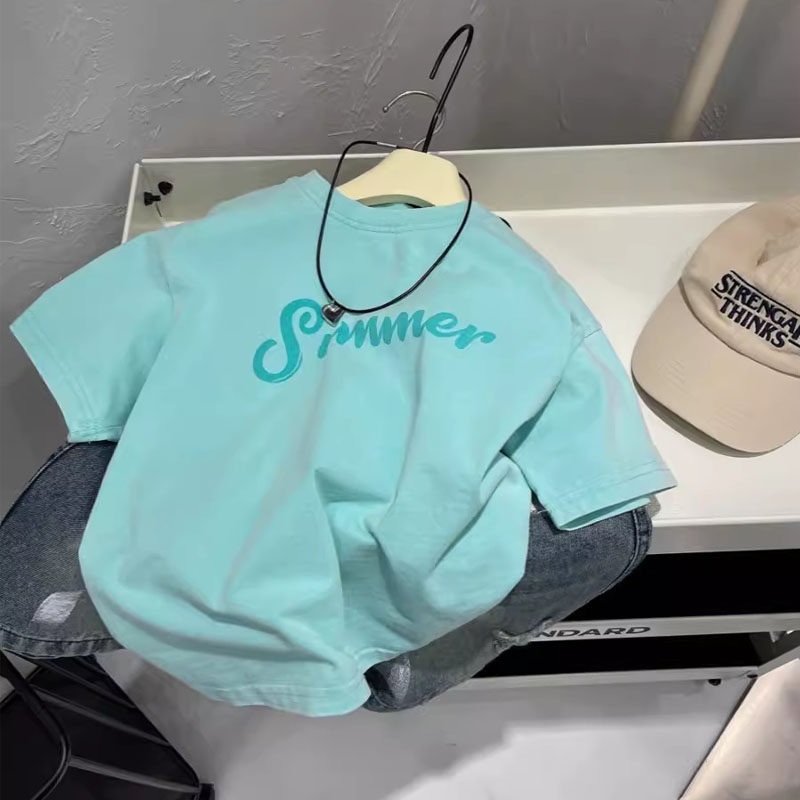 夏季新款男童时髦字母印花短袖T恤中小童洋气宽松纯棉半袖上衣潮