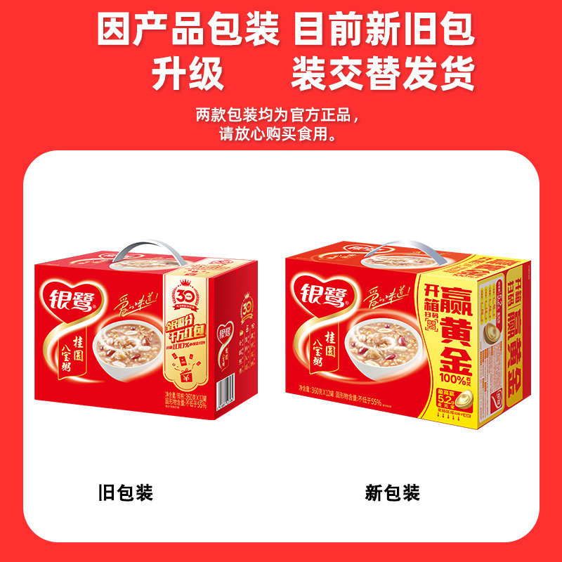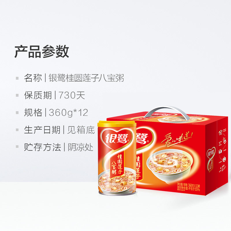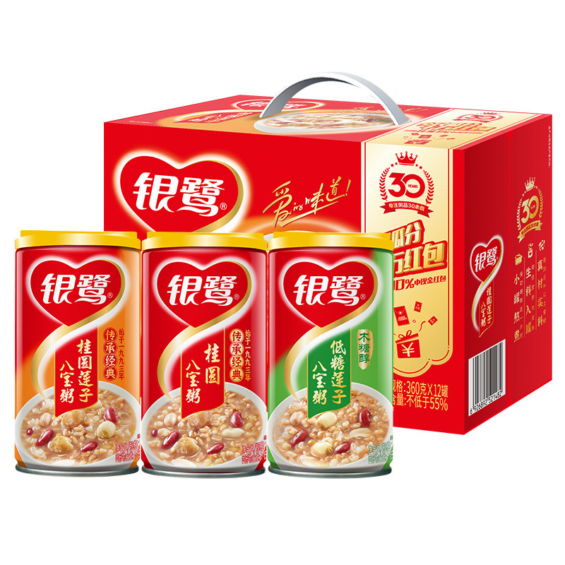 9月新货 银鹭八宝粥桂圆莲子低糖粥360g*12罐混合装营养速食粥