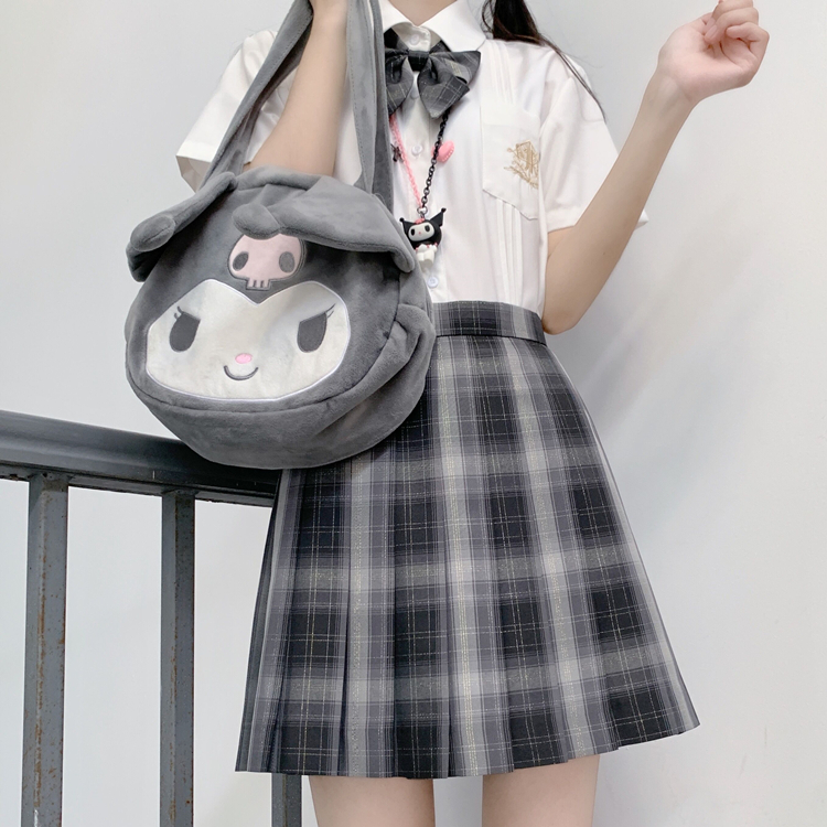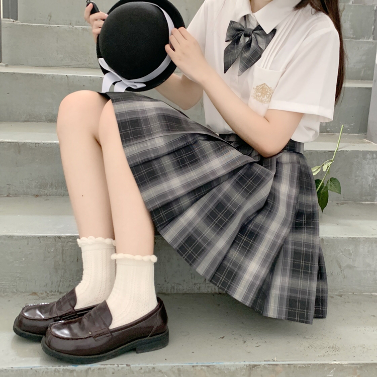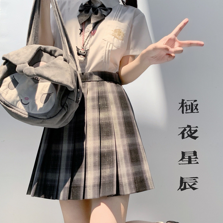 北苇【极夜星辰】jk格裙夏裙水手服百褶裙黑格日系原创金线银线格