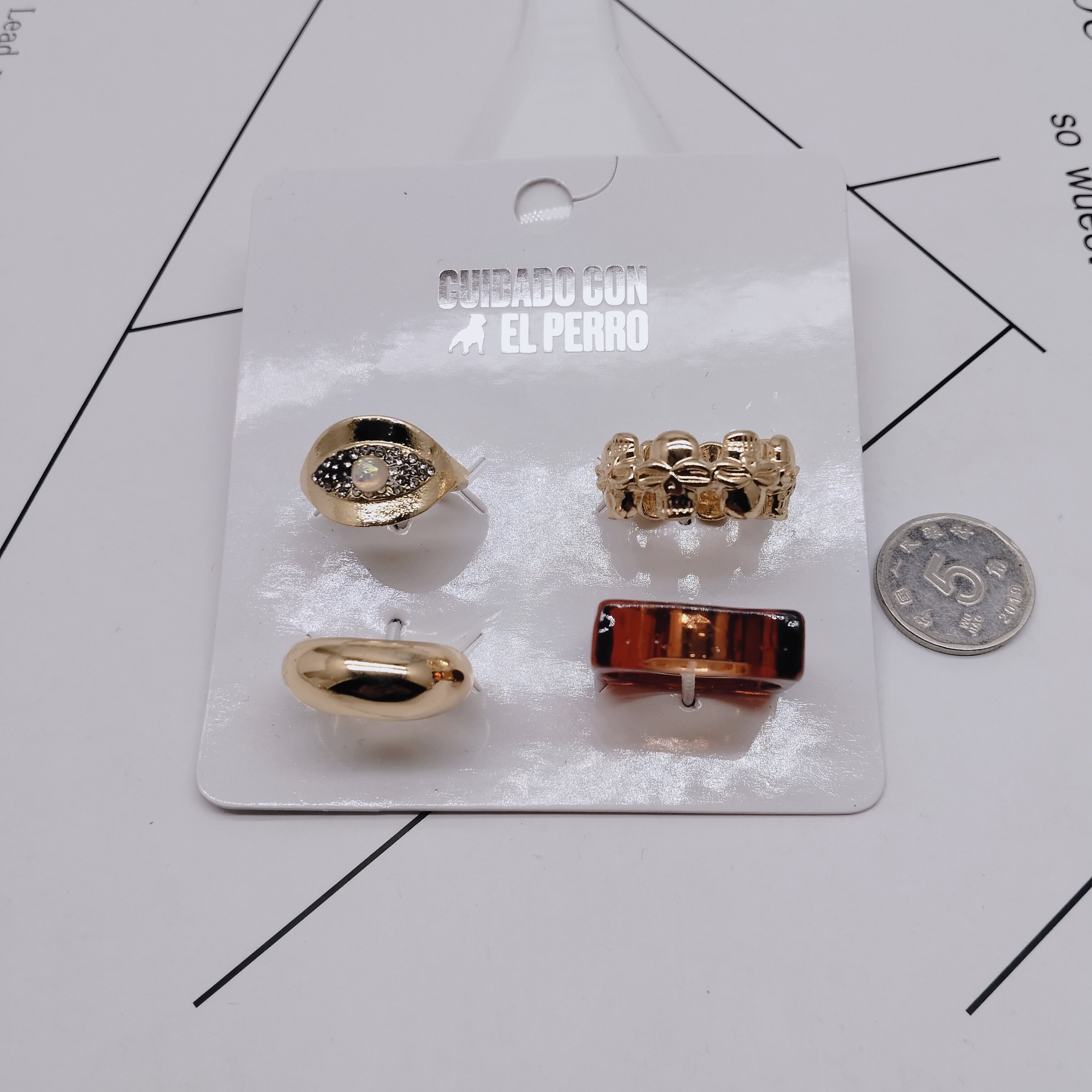 K250夸张质感时尚潮流气质名媛街拍几何套装宫廷创意金属戒指~女