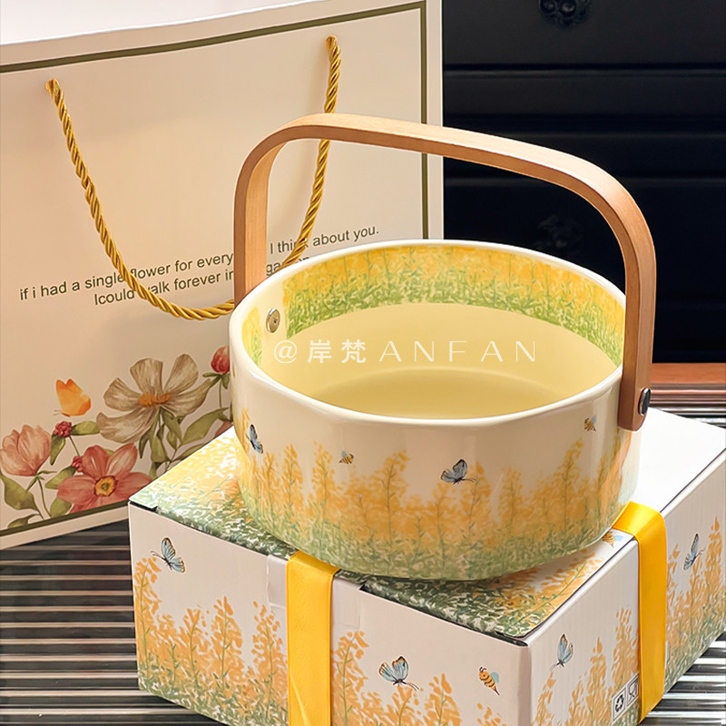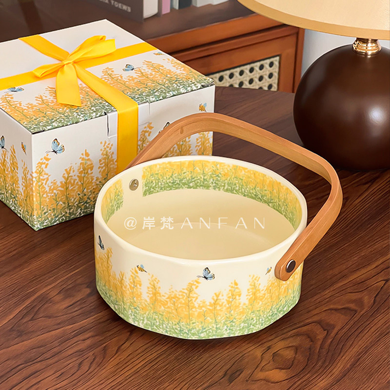 田园风陶瓷水果盘手提篮收纳篮