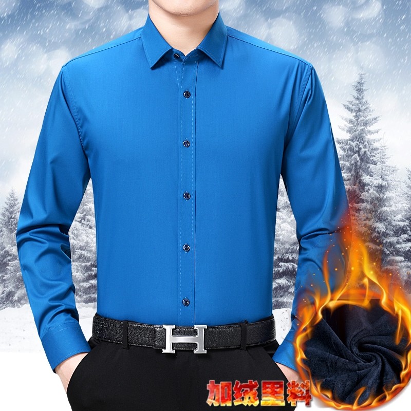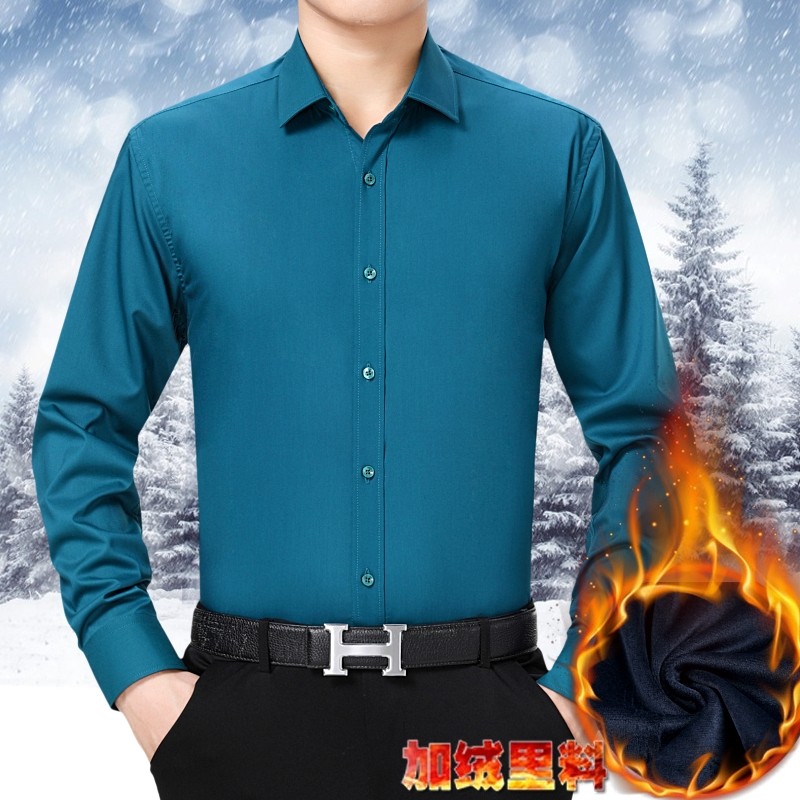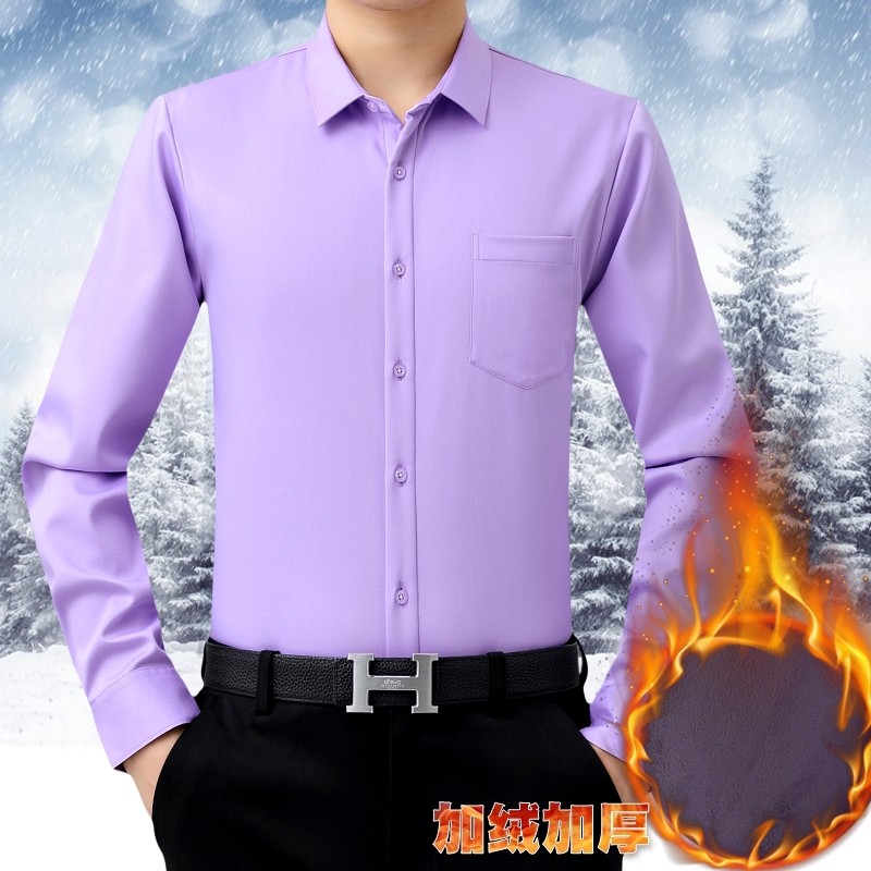 鄂尔多斯市生产纯羊绒长袖衬衫男士高档纯色商务正装加绒保暖衬衣