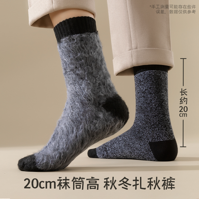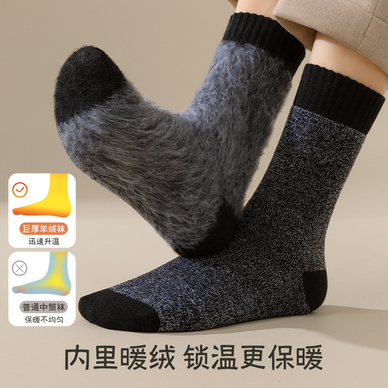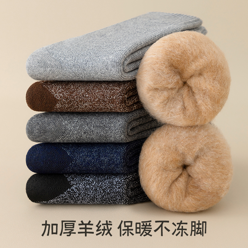羊绒袜子男款中筒袜冬季加绒加厚羊毛棉袜抗寒超厚保暖袜男士长袜