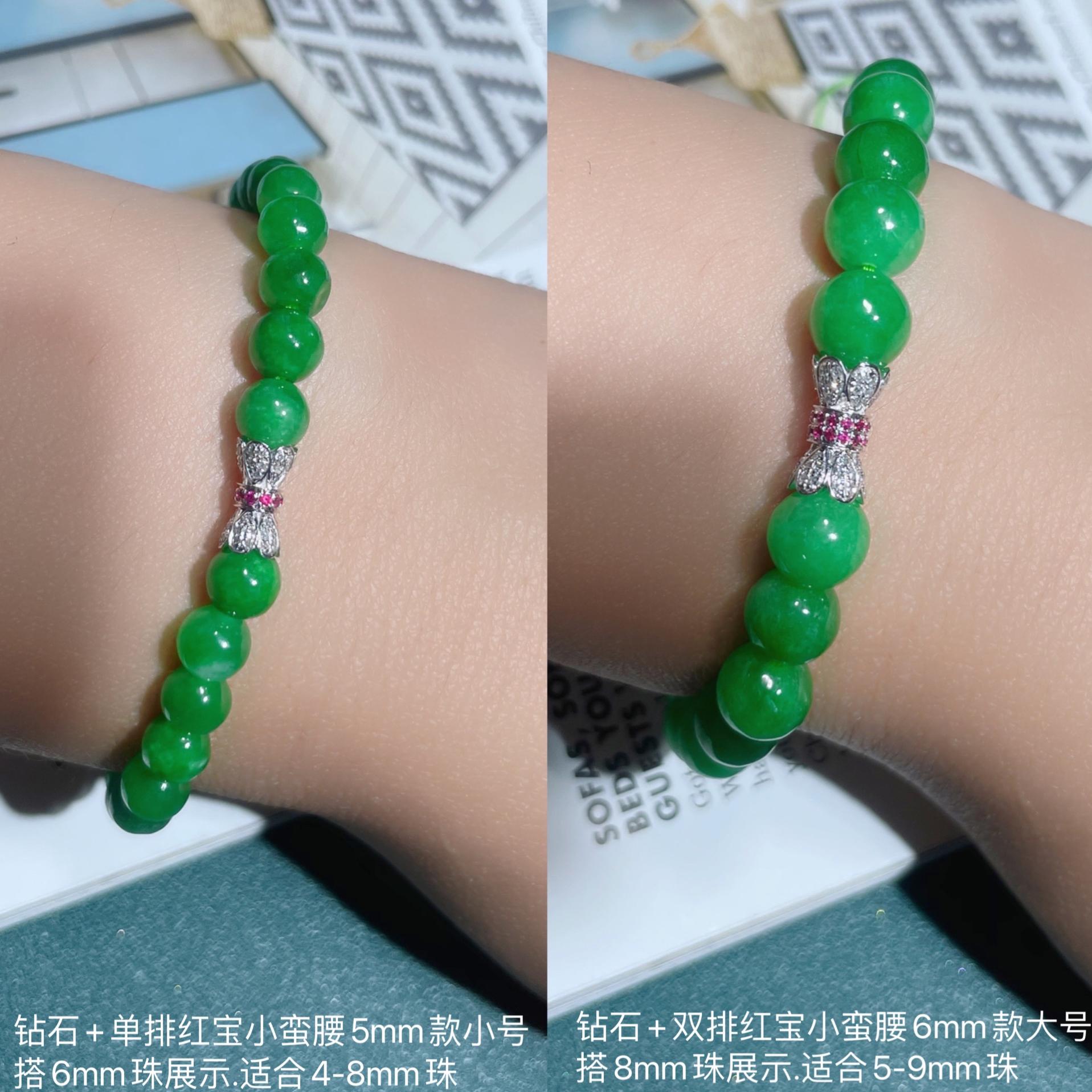 隔片18K白金镶嵌天然钻石红宝小蛮腰隔珠珍珠项链翡翠珠手链配件
