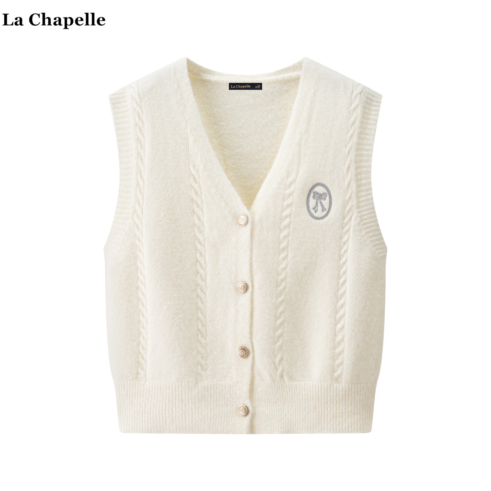 拉夏贝尔/La Chapelle蝴蝶结刺绣无袖针织开衫女秋冬叠穿马甲背心