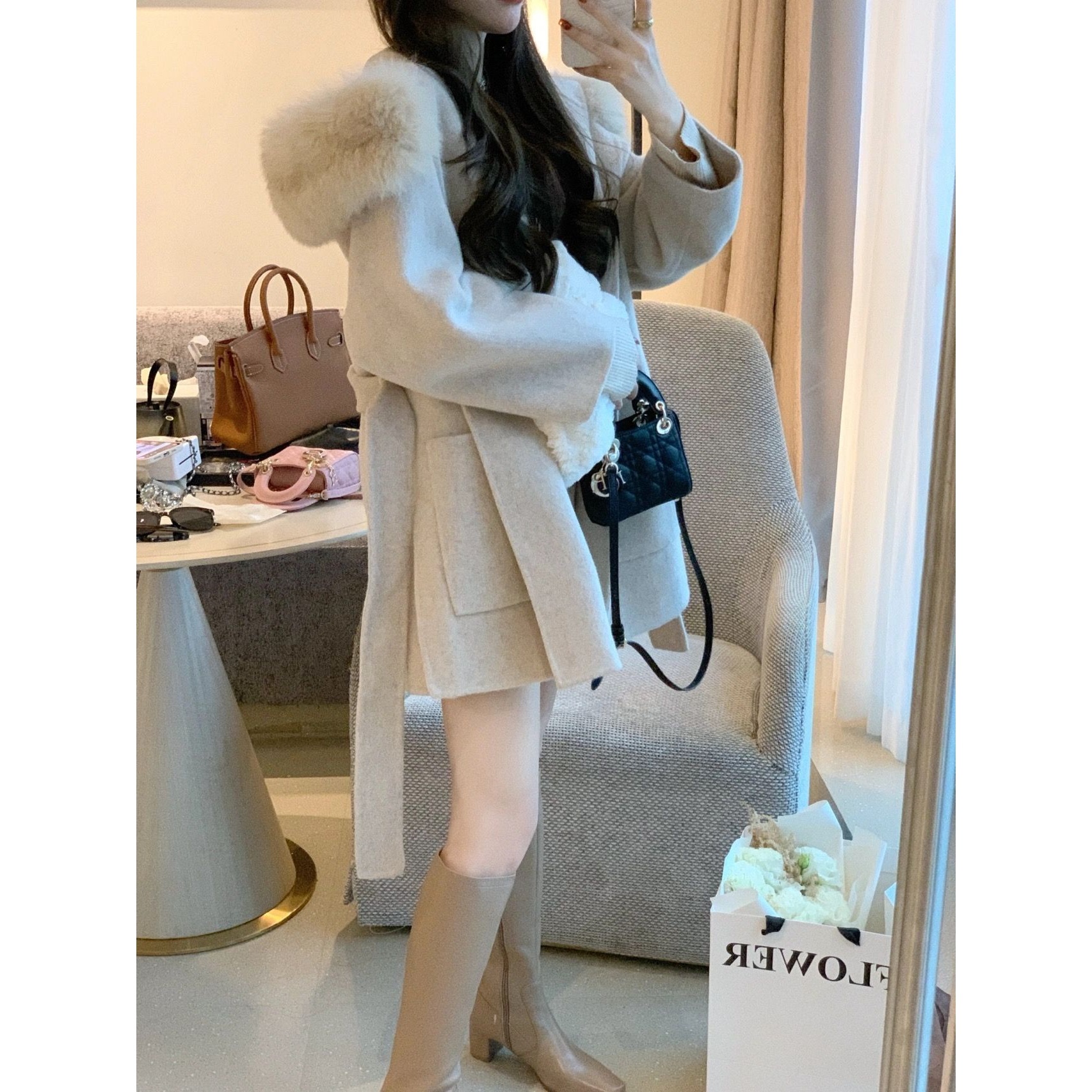 高级感羊绒双面呢子韩系短款大衣秋冬女装小个子气质收腰毛呢