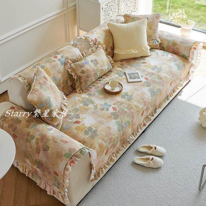 韩式全棉绗缝夹棉纯棉防滑沙发垫四季通用机洗布艺沙发套罩靠背巾