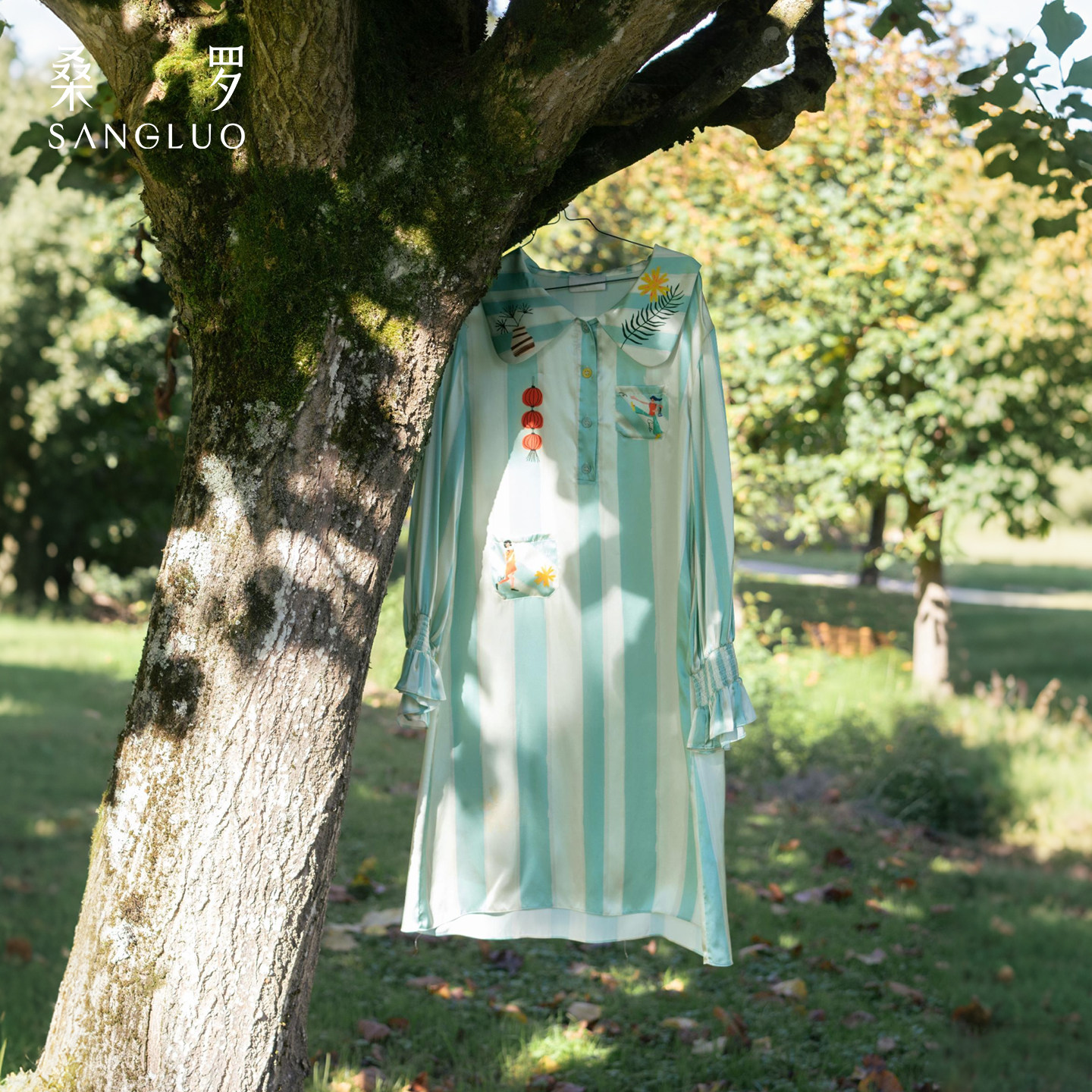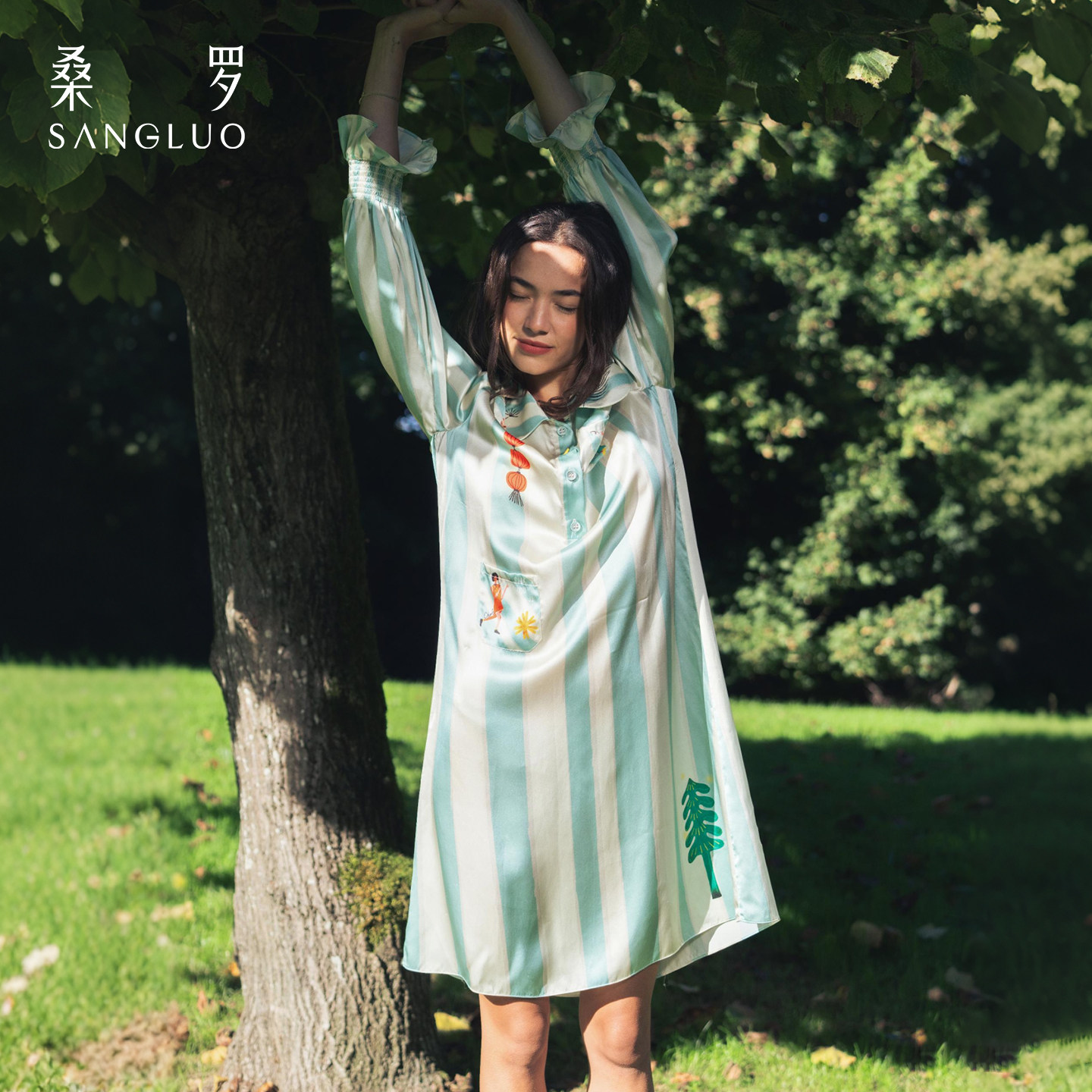 李兰迪同款』桑罗100%真丝睡裙鬼马少女童趣印花裙女可外穿家居服
