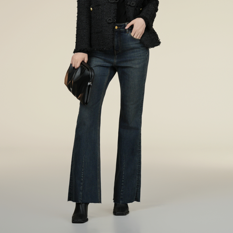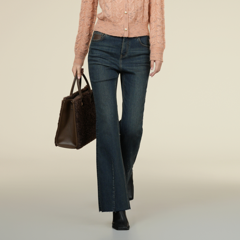 XG/雪歌2025年冬季新款高腰显瘦微喇牛仔裤女长裤XK402401A319