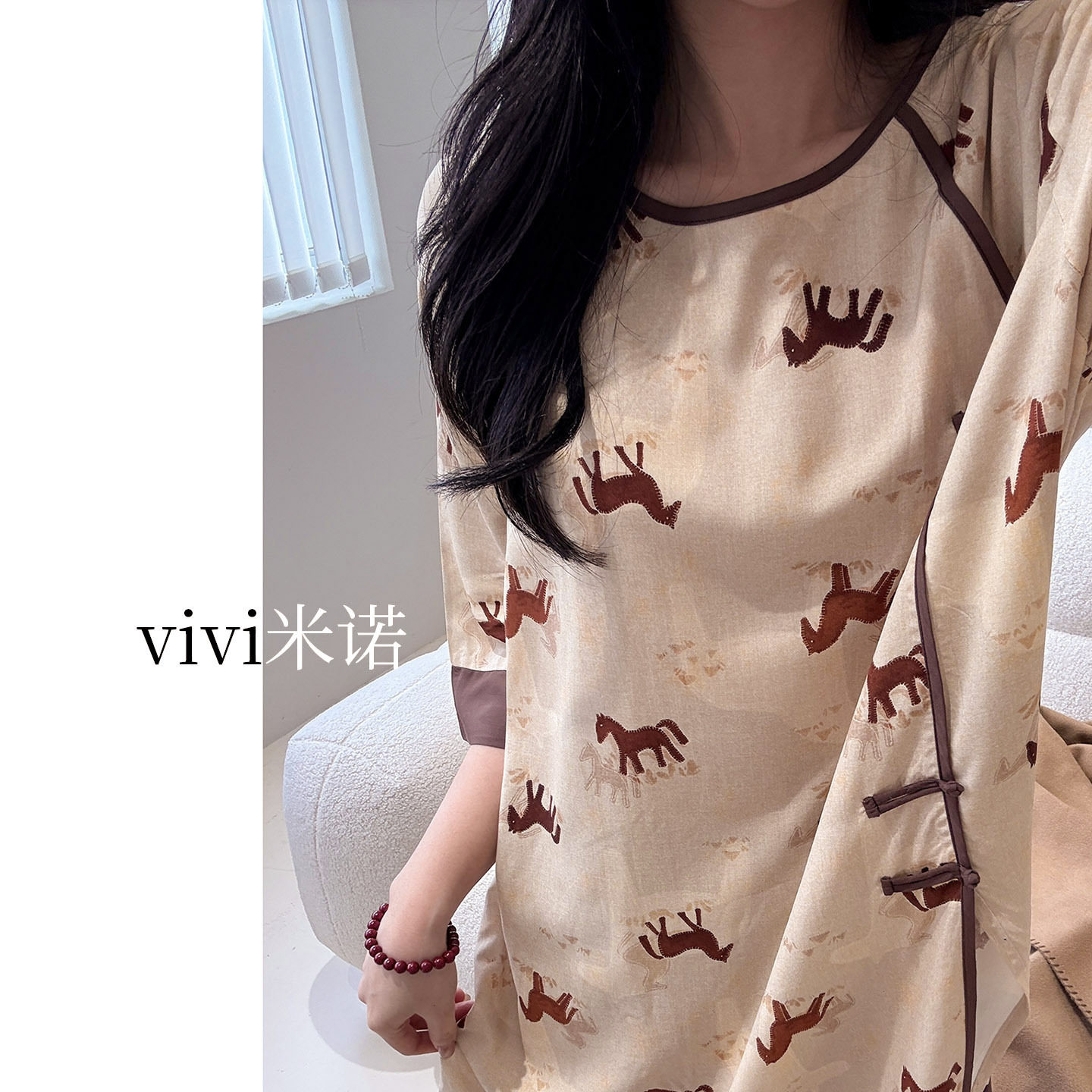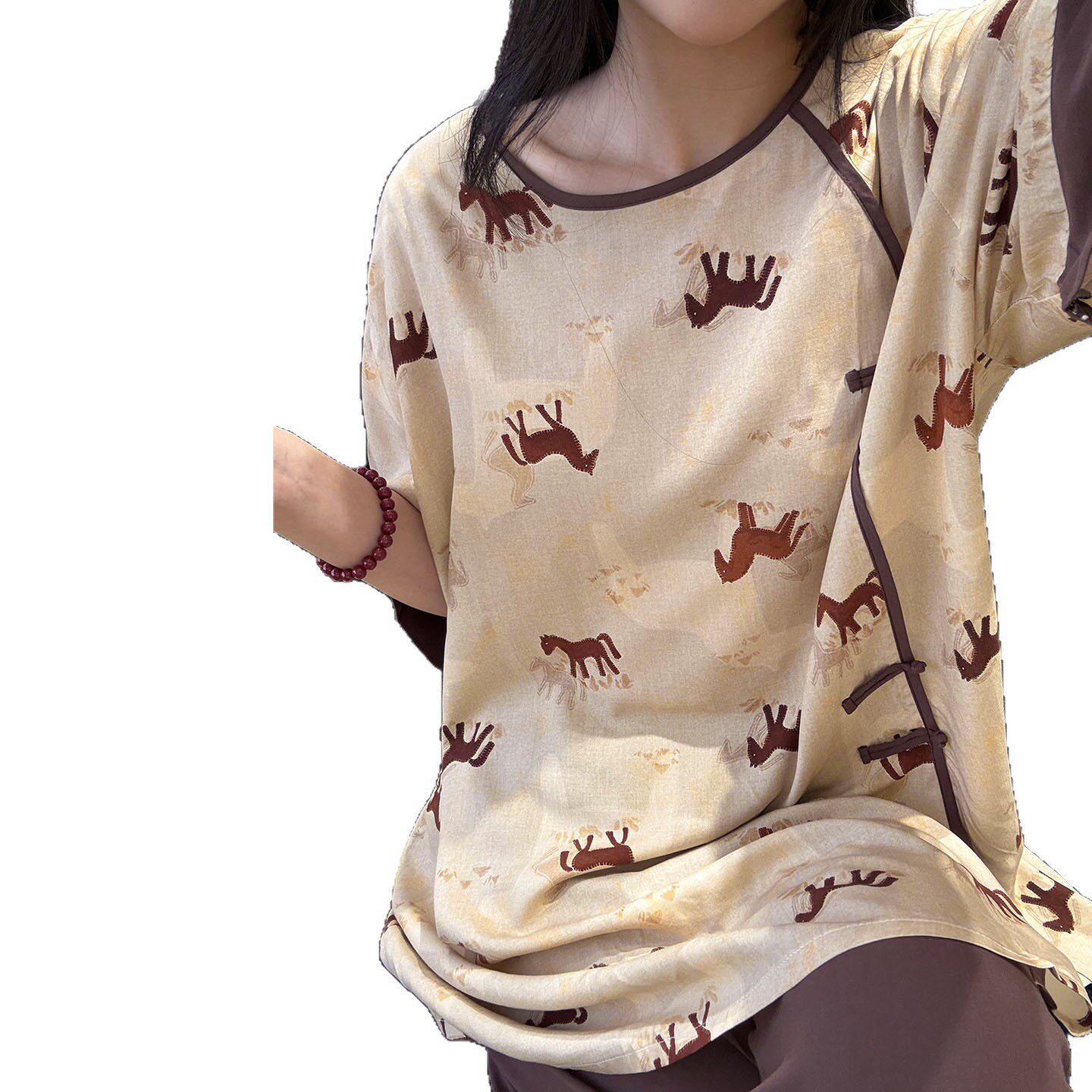2026年新款新中式风绵绸卡通小马印花睡衣女春夏季棉绸家居服套装