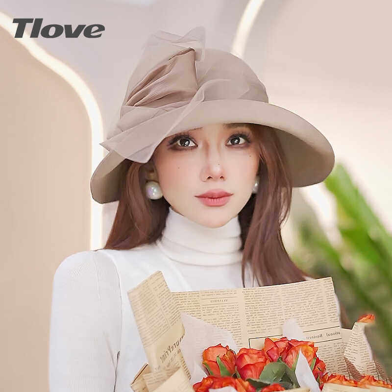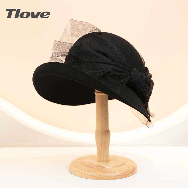 9631tlove优雅赫本风大檐帽子女士秋冬天新款出游大檐羊毛毡礼帽
