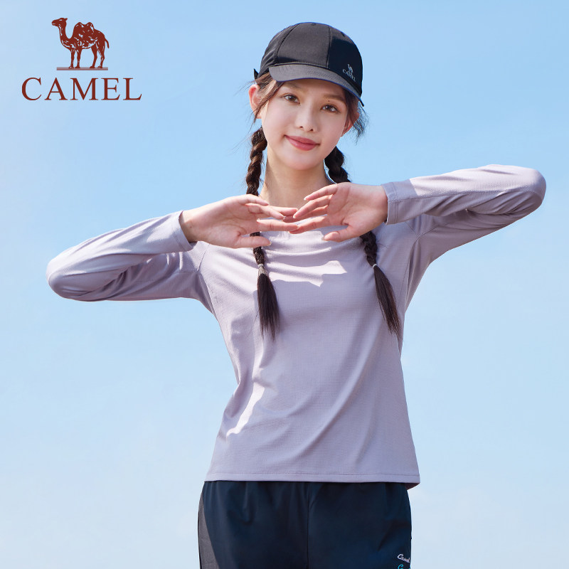 骆驼运动速干T恤女春夏季款防晒服跑步训练长袖瑜伽健身上衣