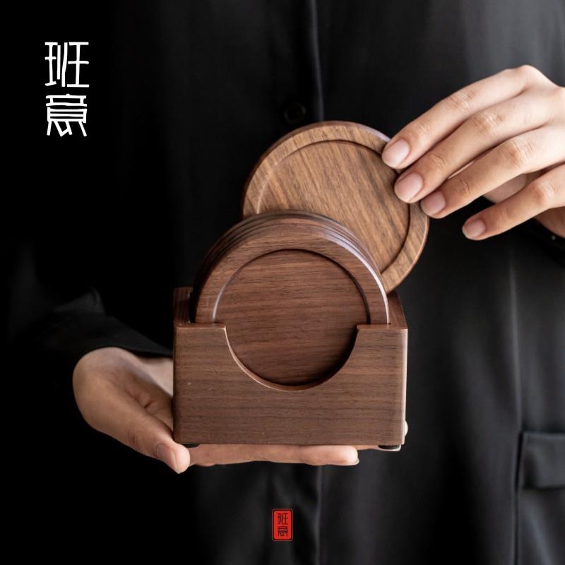 黑胡桃实木茶杯垫茶道水壶杯托茶杯架隔热垫杯托创意组合功夫茶具