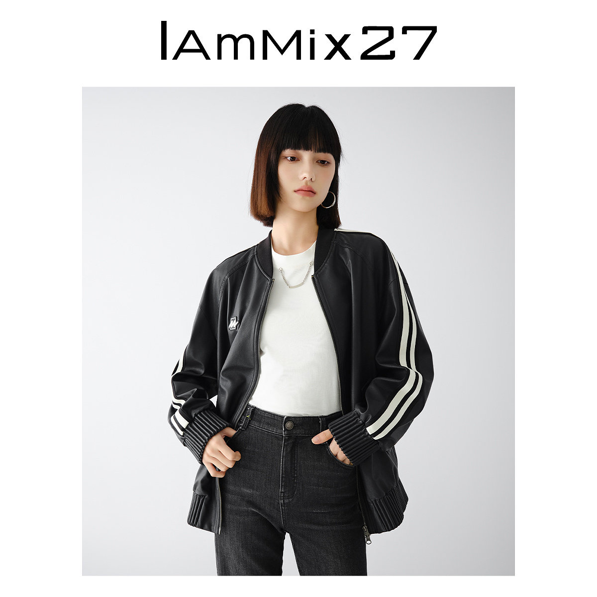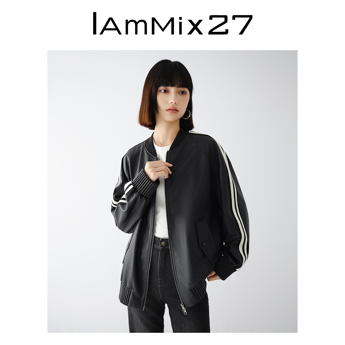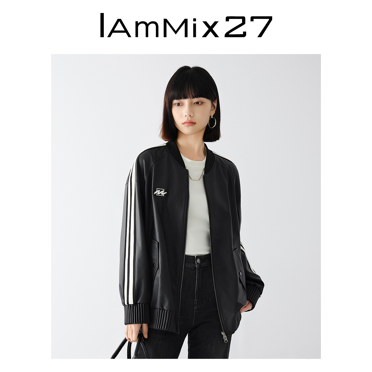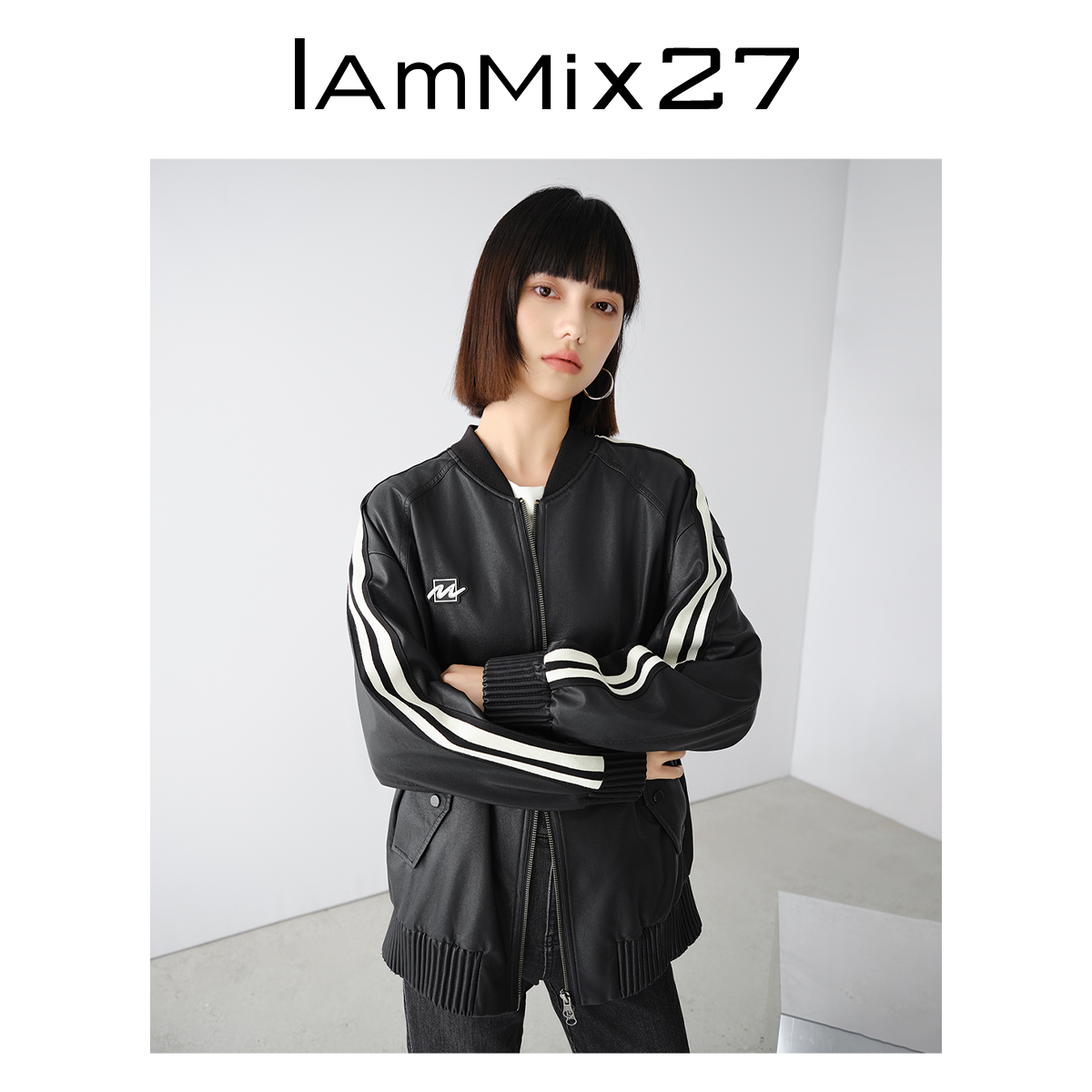 IAmMIX27春秋黑色皮衣外套女宽松运动休闲百搭PU皮棒球服女皮夹克
