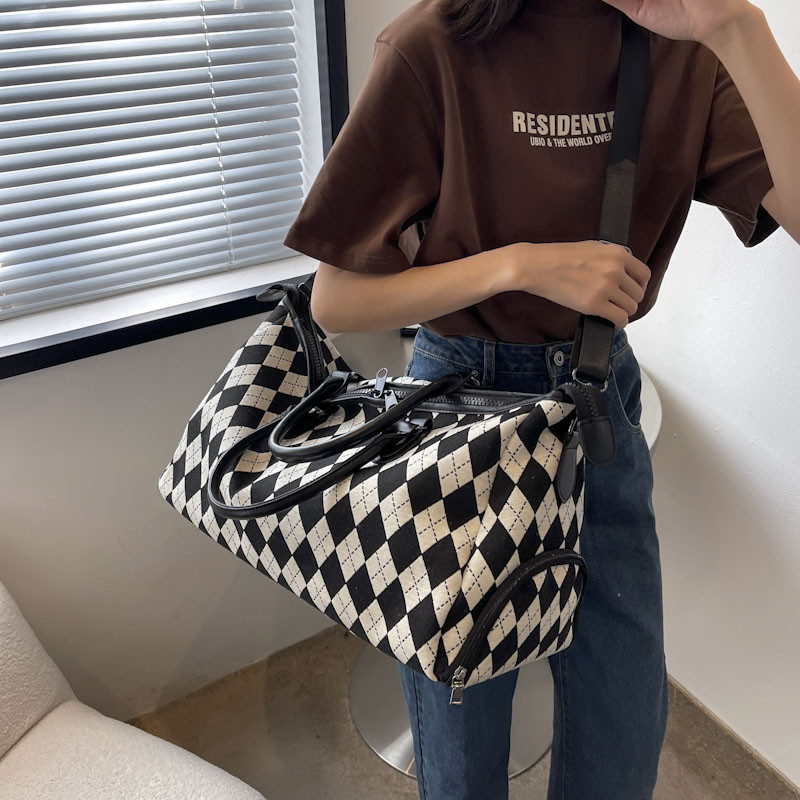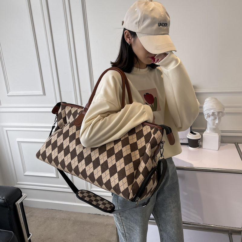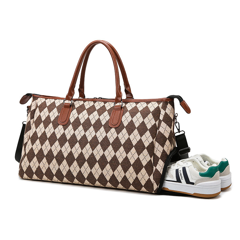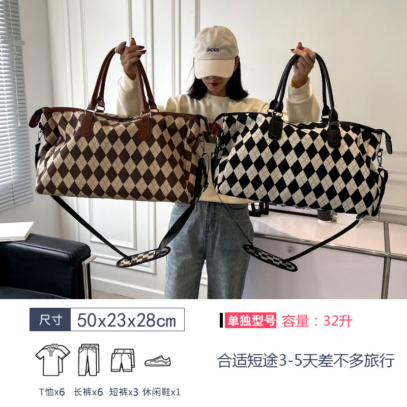 旅行韩版女菱格纹行李袋大容量