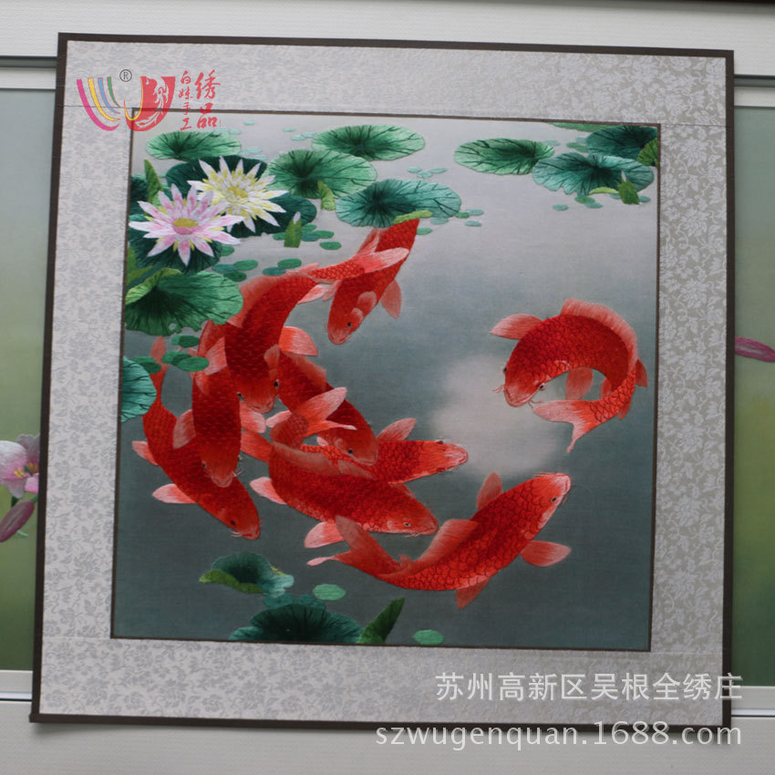 客厅软裱画苏绣书房餐厅装饰画苏州纯手工刺绣挂画秋实图九鱼图