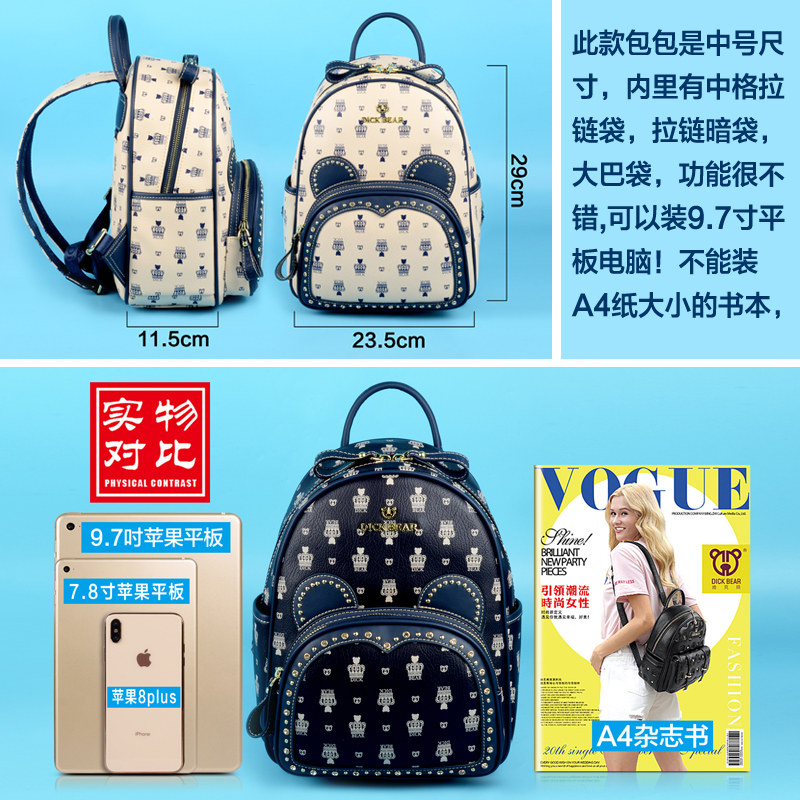 维尼熊双肩包2020新款迪克熊专柜正品背包日韩小熊印花卡通书包女