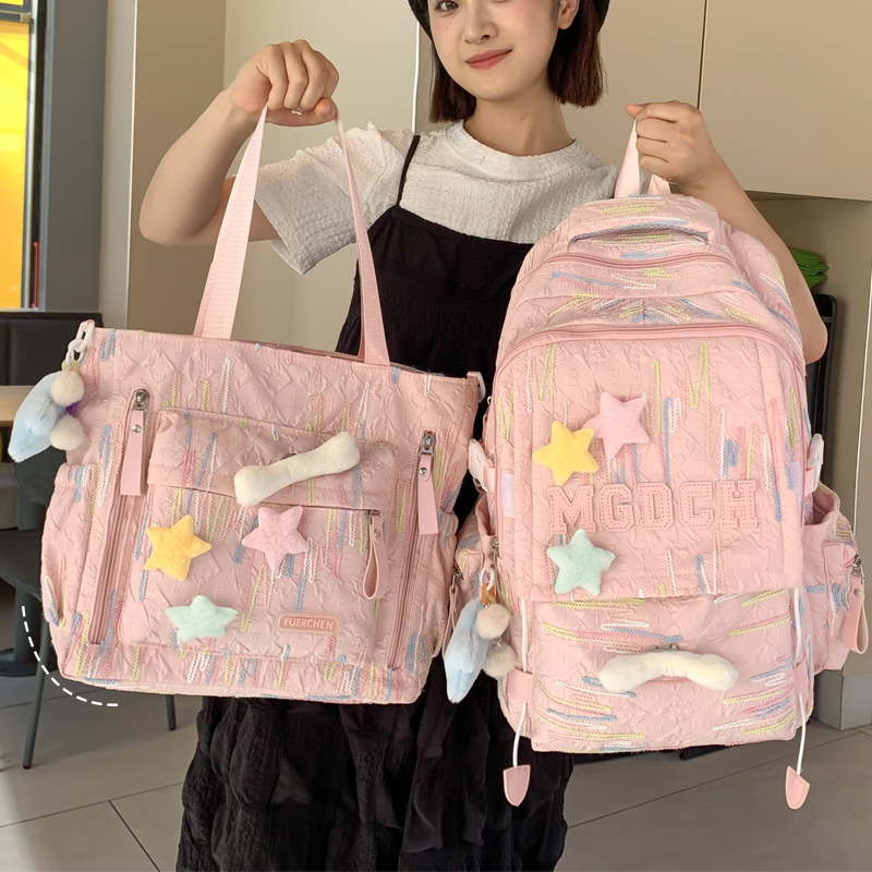 高颜值书包女初中生大容量高中女生减负双肩包小学生大学生休闲包