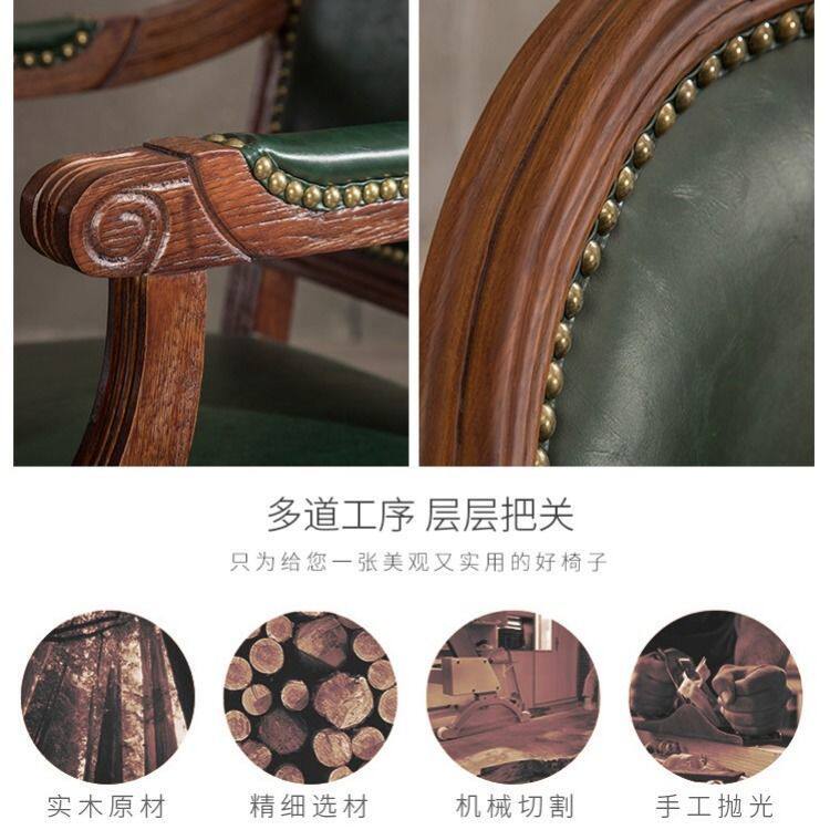 美式实木餐椅酒店做旧咖啡椅复古橡木椅子餐厅扶手靠背凳子书桌椅